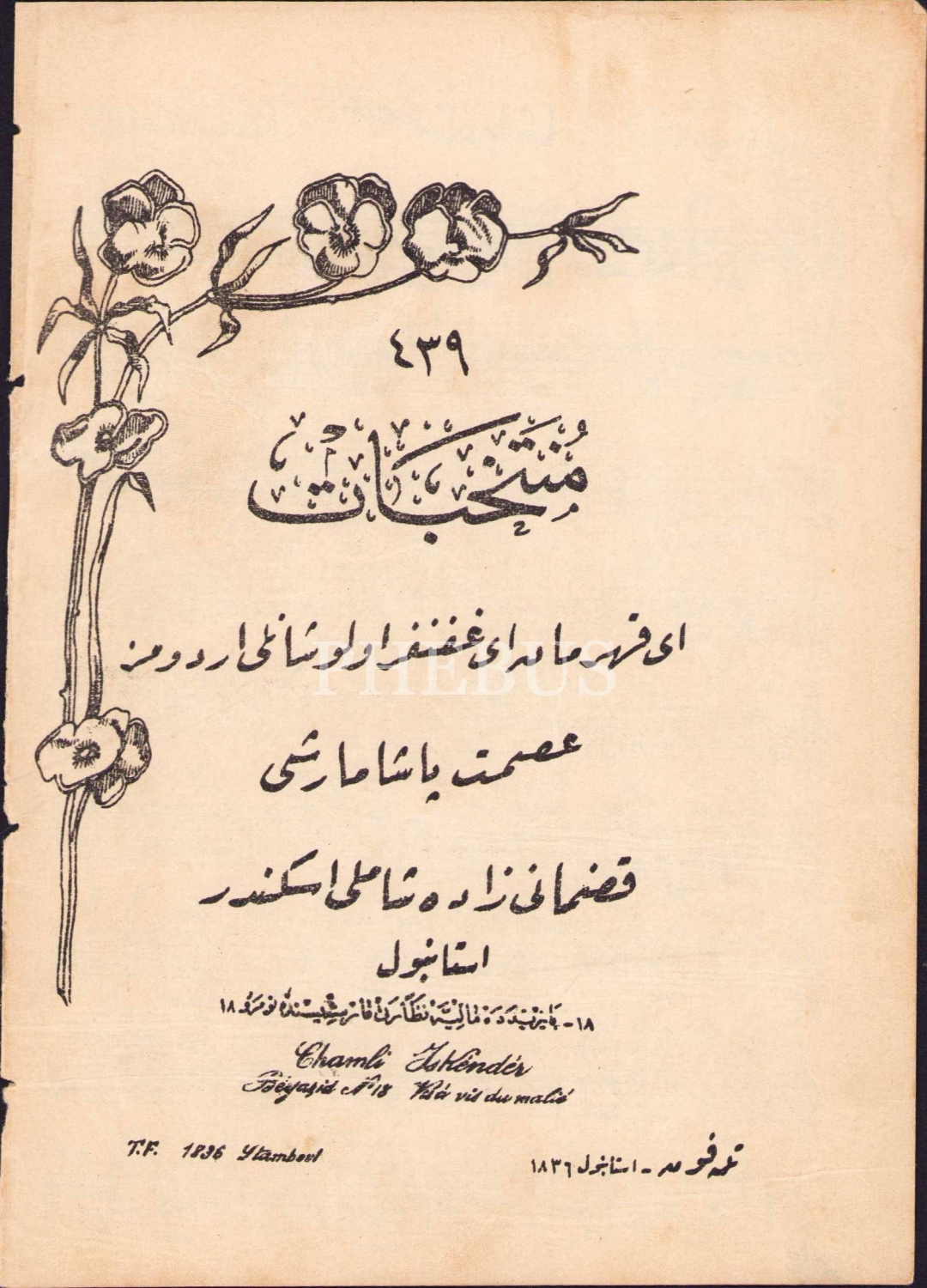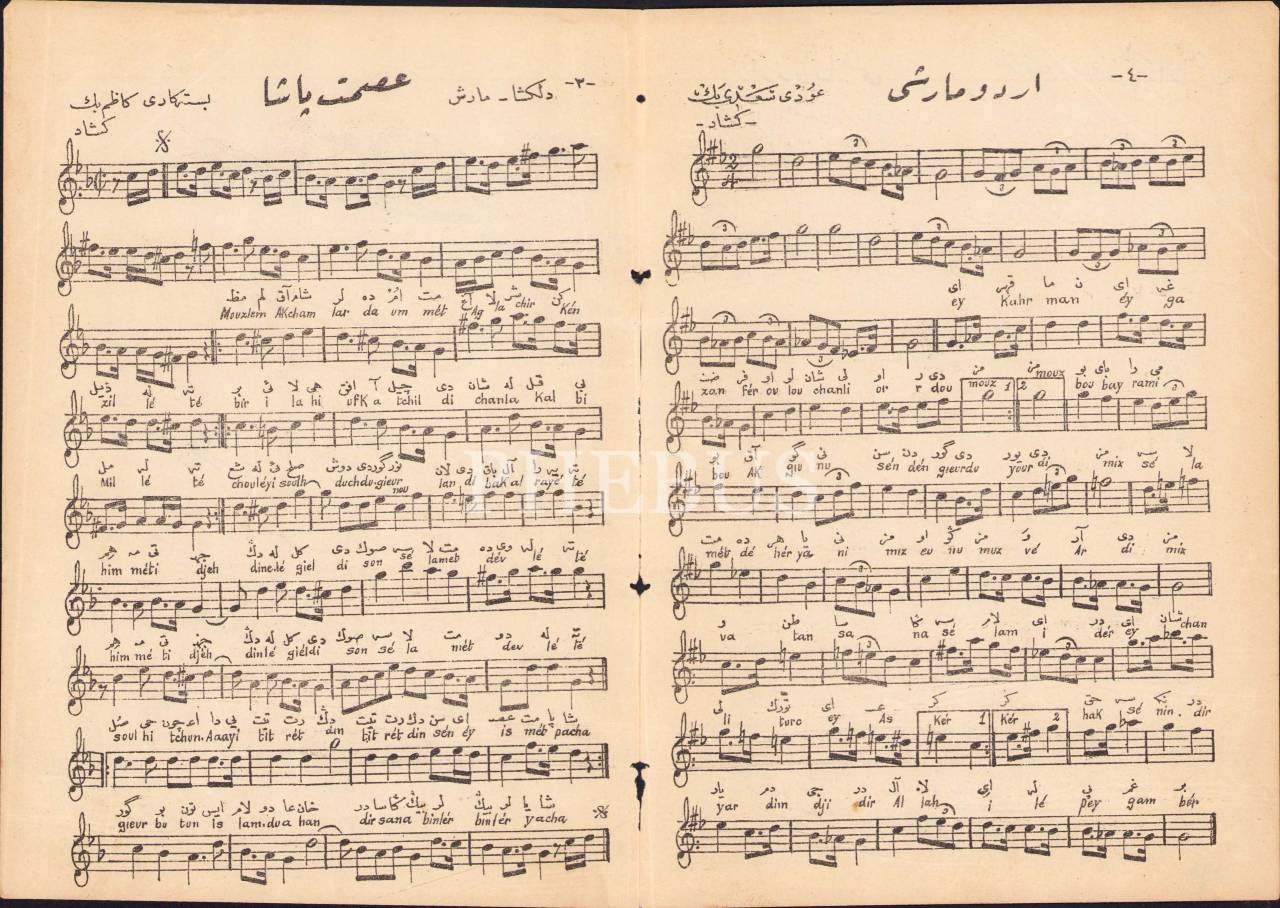 Osmanlıca Şamlı İskender'den nota, Müntehabat - Ordu ve İsmet Paşa marşları, İstanbul 1836, 20x28 cm