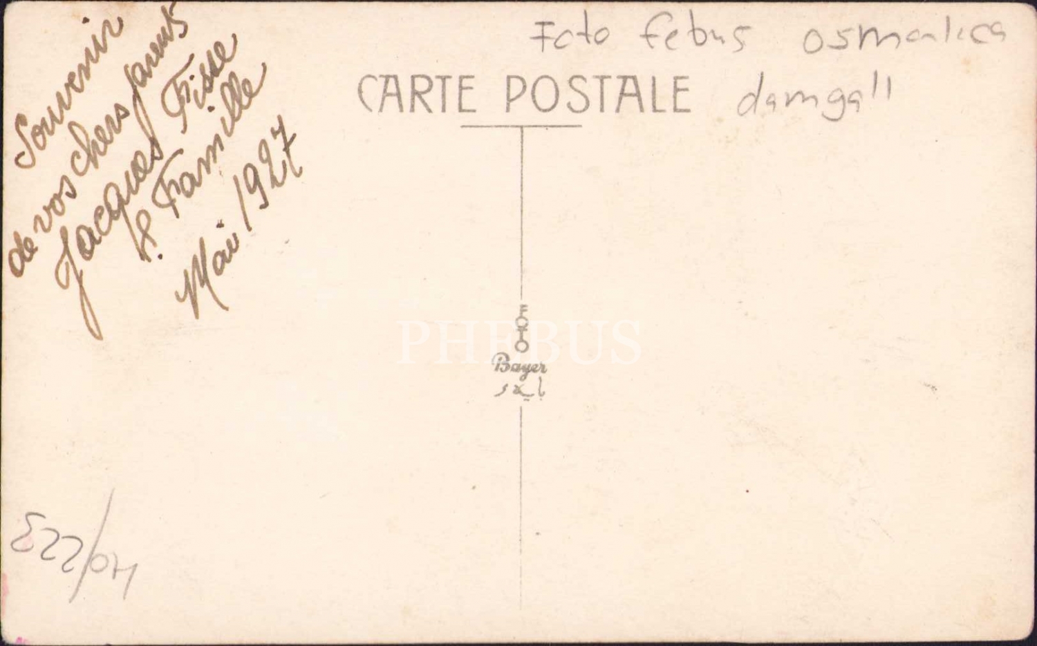 1927 tarihli Foto Phebus Osmanlıca damgalı şahıs fotoğrafı, 8x14 cm