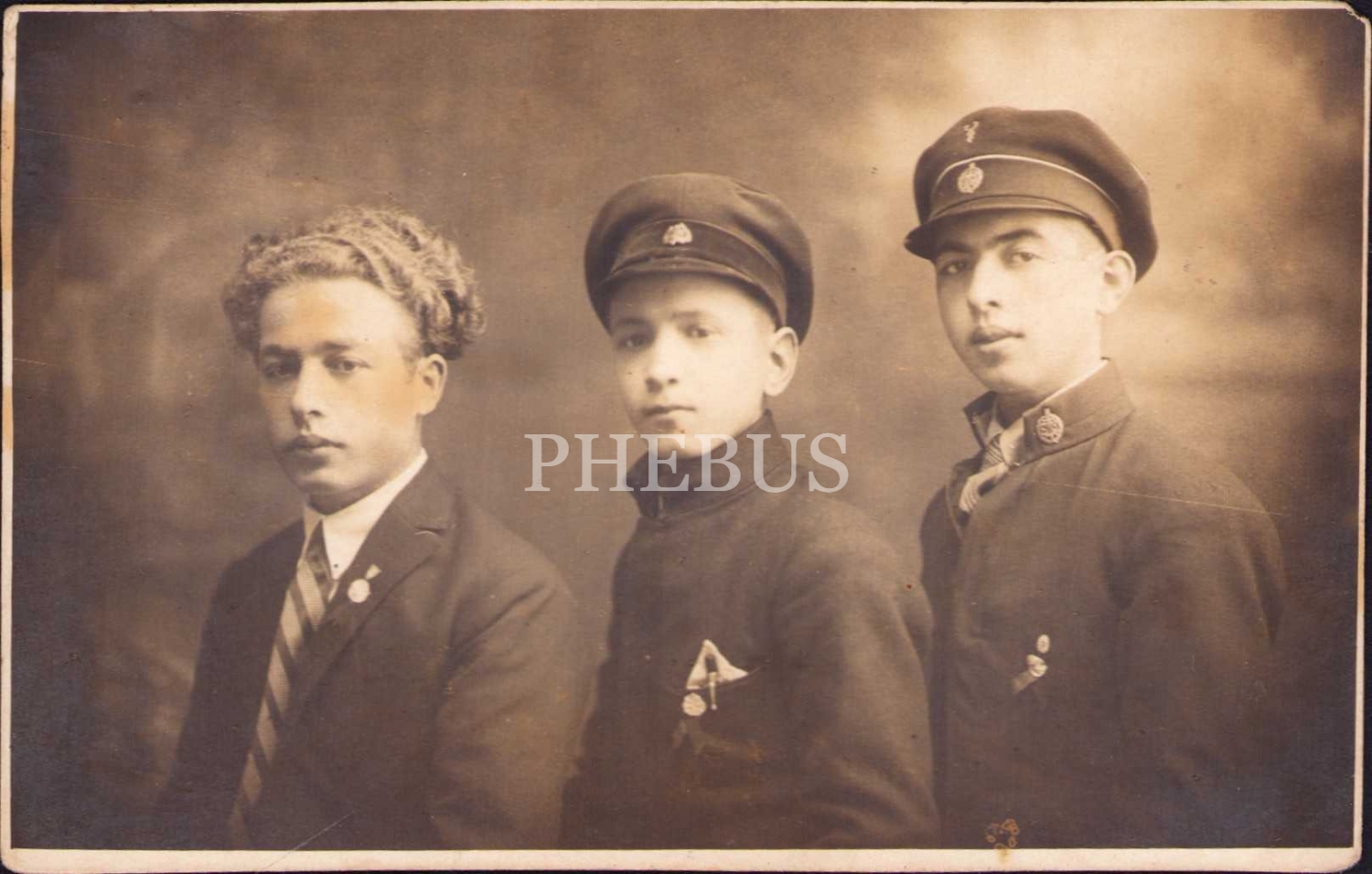 Erken Cumhuriyet döneminden rozet ve madalyalı 3 öğrenci, Burgaz, 9x13 cm
