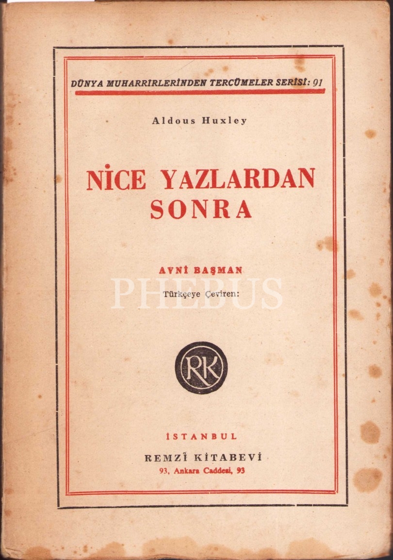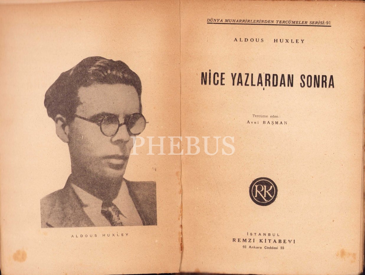 Nice Yazlardan Sonra, Aldous Huxley, Çev.: Avni Başman, Remzi Kitabevi, İstanbul 1946, 283 syf., 14x21 cm