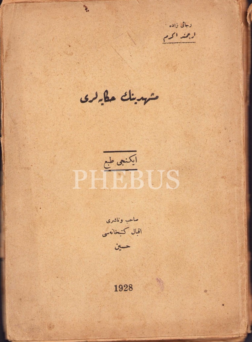 Osmanlıca Recaizade Ercümend Ekrem, Meşhedi'nin Hikayeleri, Şirket-i Mürettebiye Matbaası, 1928, 128 syf., 14x20 cm, sırtı haliyle