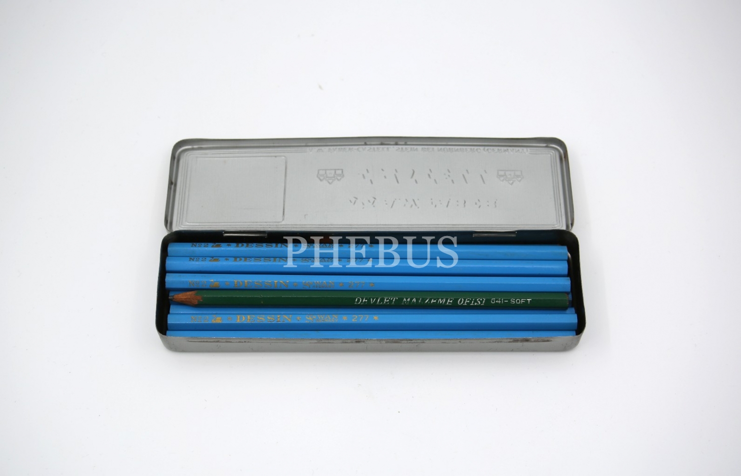 A.W. Faber Castell teneke kutusunda muhtelif kurşun kalemler, 18x5x1 cm
