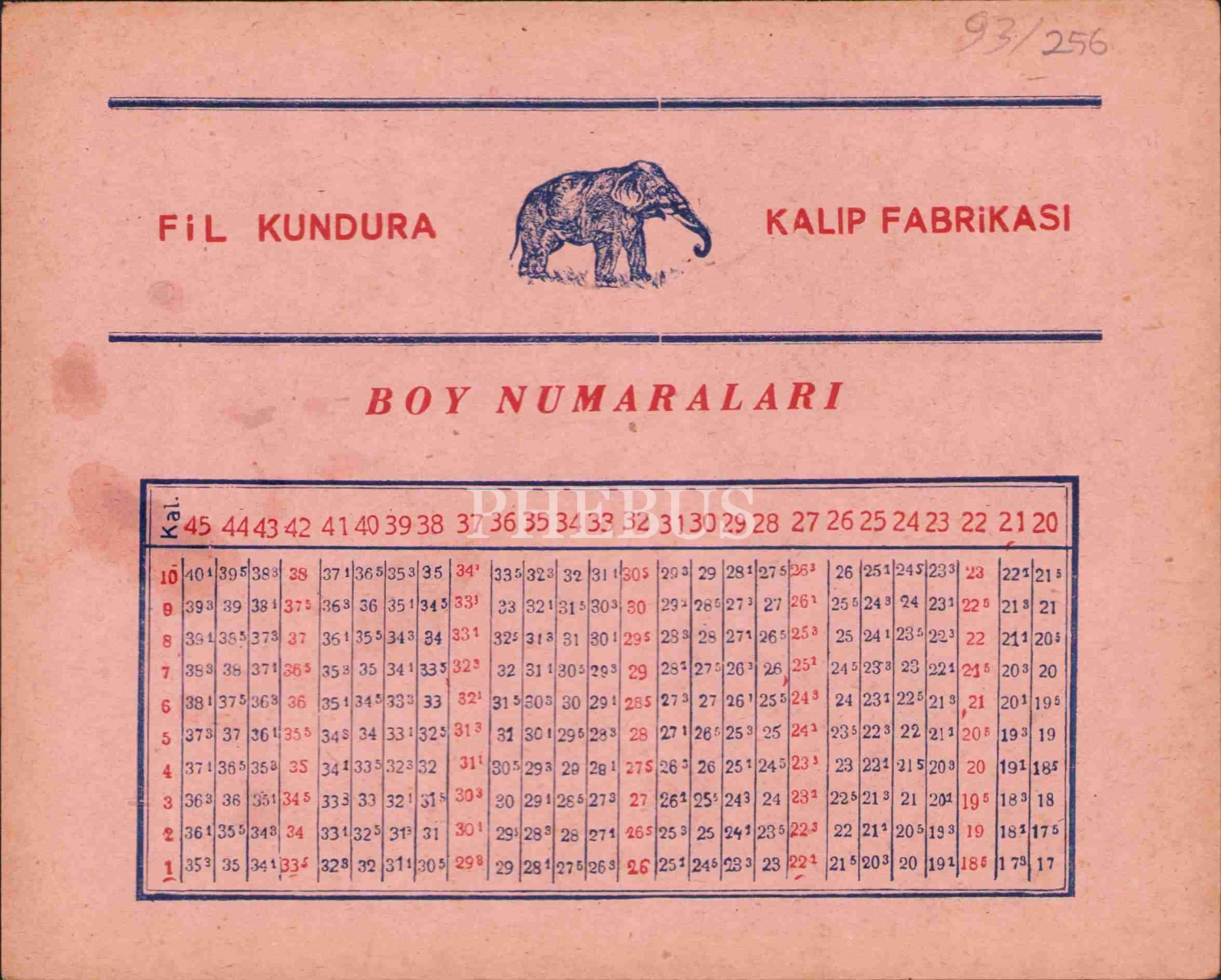 Fil Kundura Fabrikası boy numaraları cetveli, 20x15 cm
