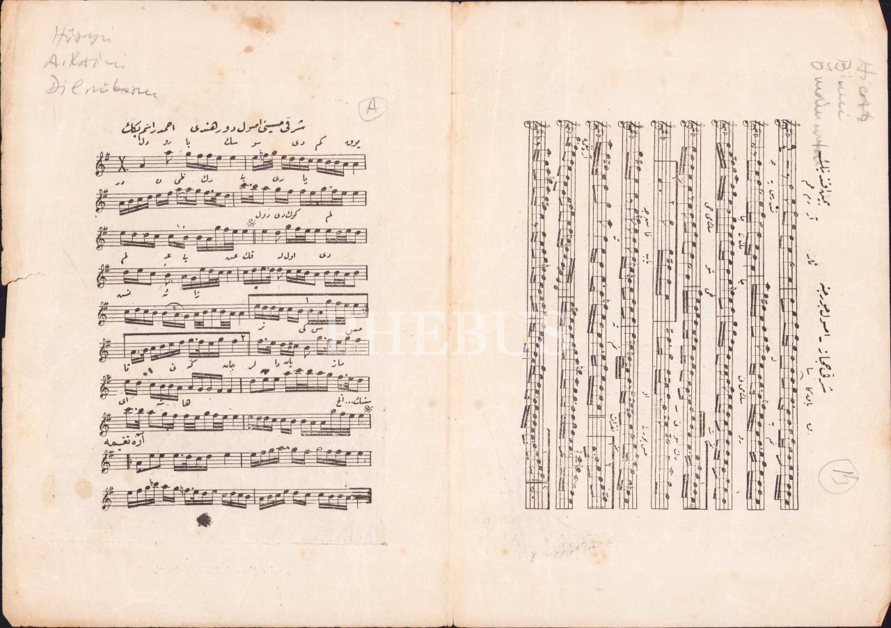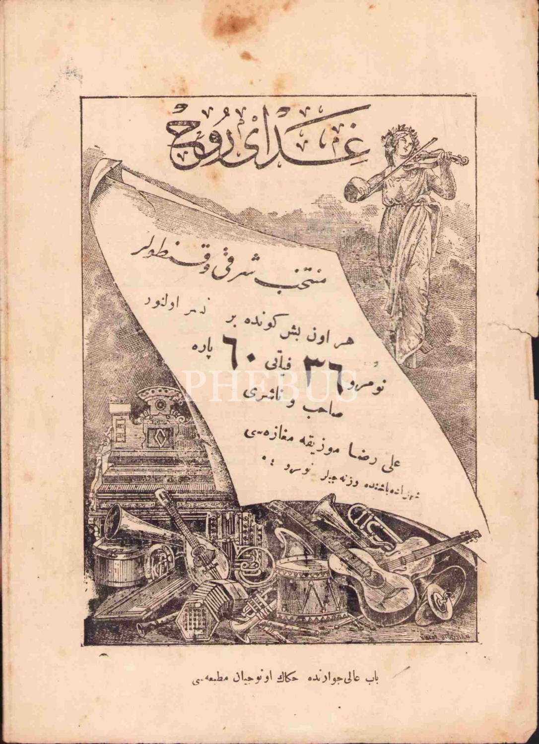 Osmanlıca nota, Gıda-yı Ruh-Müntehab Şarkı ve Kantolar, Şarkı Hicaz Usul-i Curcuna ile Şarkı Hüseyni Usul-i Devr-i Hindi, 20x28 cm