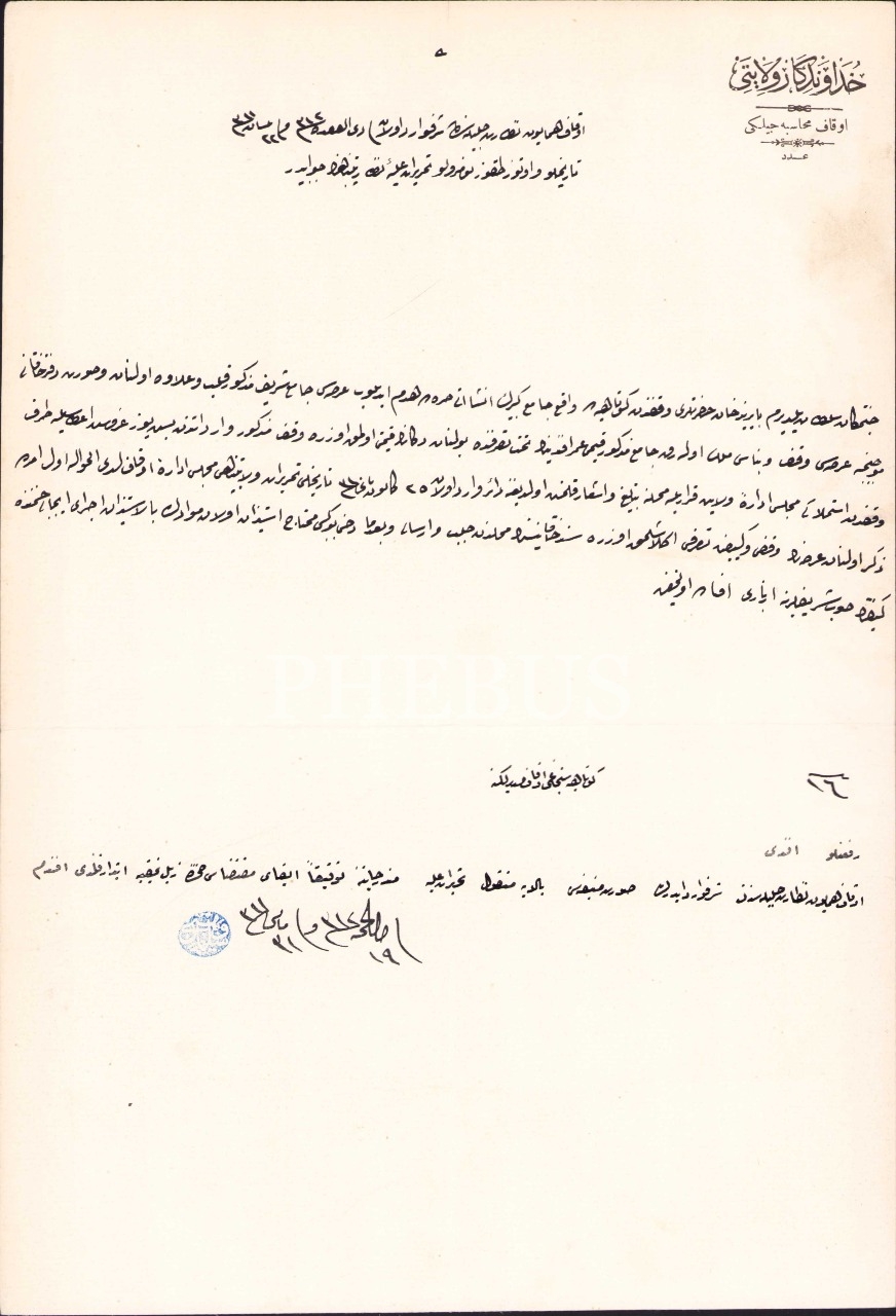 Osmanlıca Hüdavendigar Vilayeti Evkaf Muhasebeciliği antetli evrak, 1311, 23x33 cm