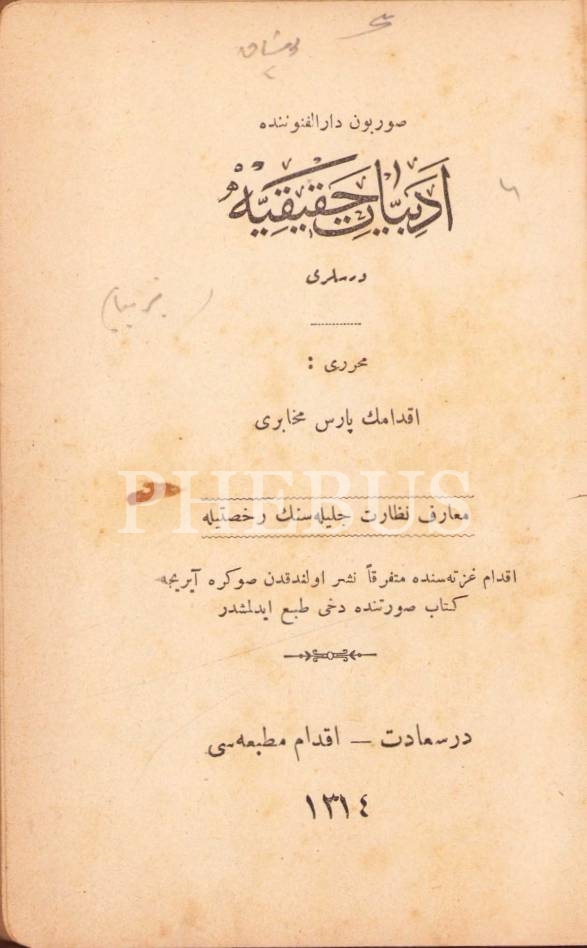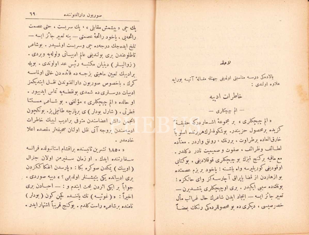 Osmanlıca Edebiyat-ı Hakikiye Dersleri, Yazan: İkdam'ın Paris Muhabiri, İkdam Matbaası, Dersaadet 1314, 222 syf., 12x17 cm