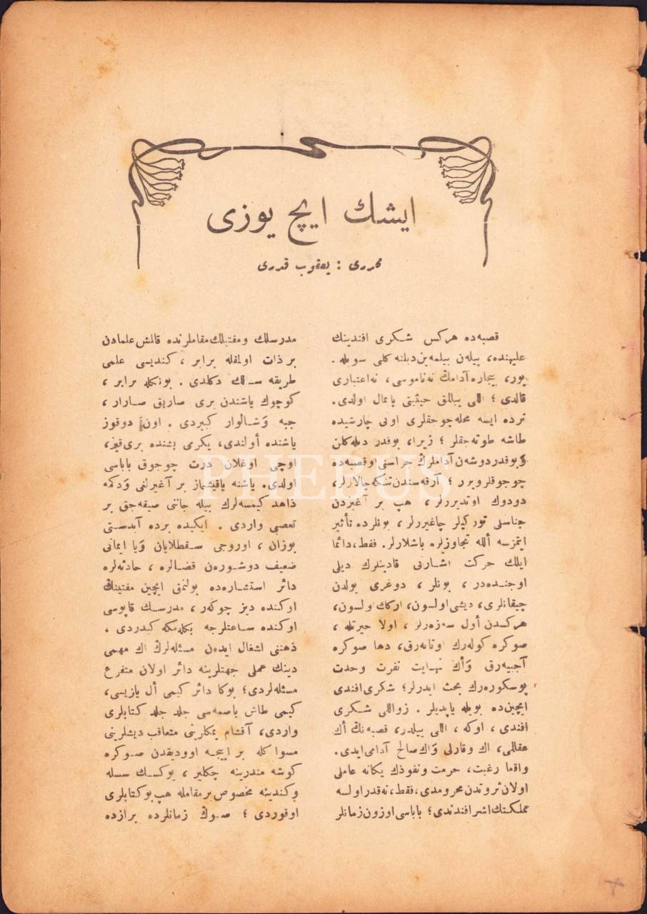 Osmanlıca Hikaye Külliyatı İkinci Sayı: İşin İç Yüzü, Yakub Kadri, 14 syf., 16x23 cm, haliyle