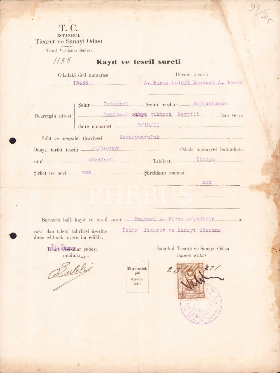 İstanbul Ticaret ve Sanayi Odası, Kayıt ve Tescil sureti, 23x31 cm