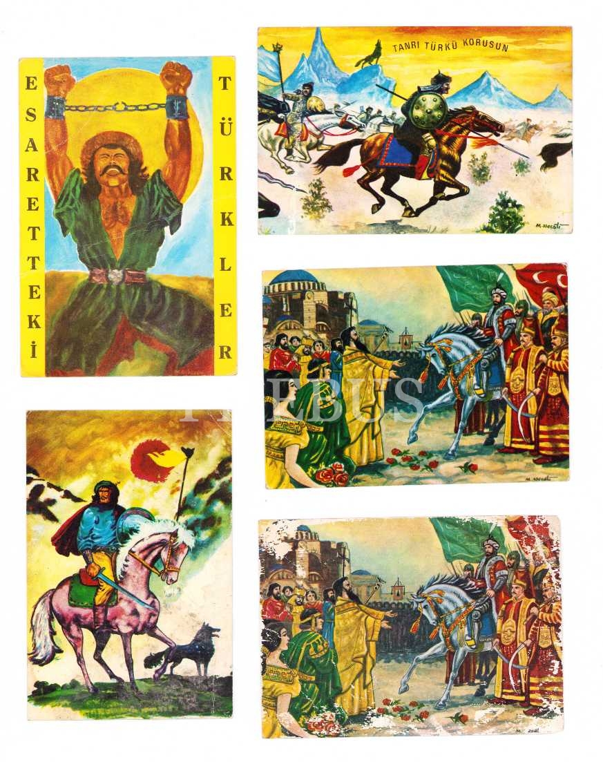 1990'lı yıllardan Türkçülük konulu 10 adet kartpostal, çeşitli boyutlarda