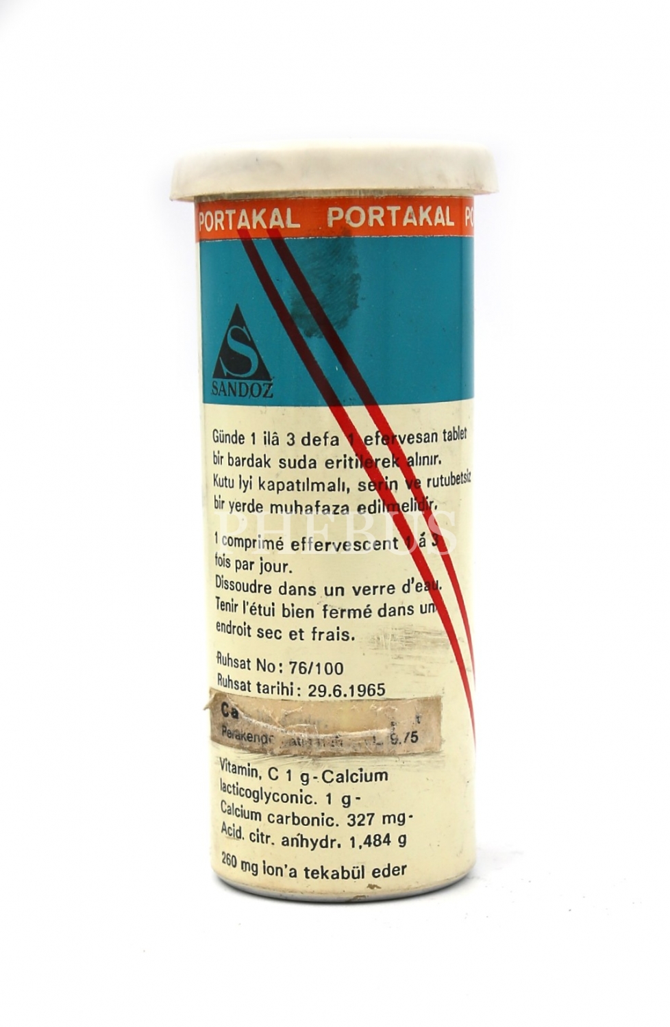 Calcium Sandoz teneke ilaç kutusu, 9x4 cm