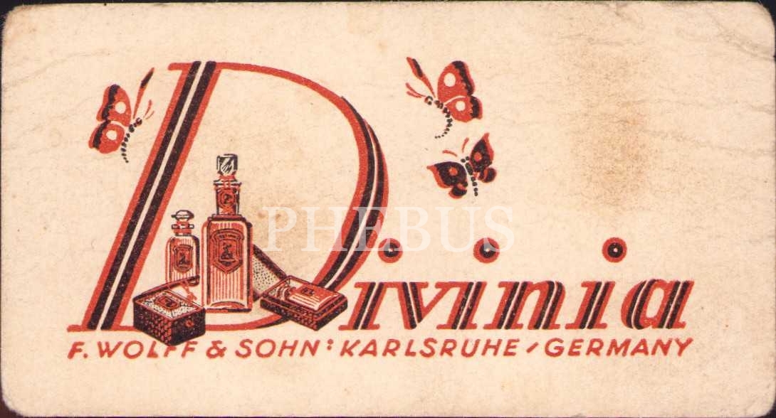 Arkası Osmanlıca damgalı Divinia reklam kartı, 9x5 cm