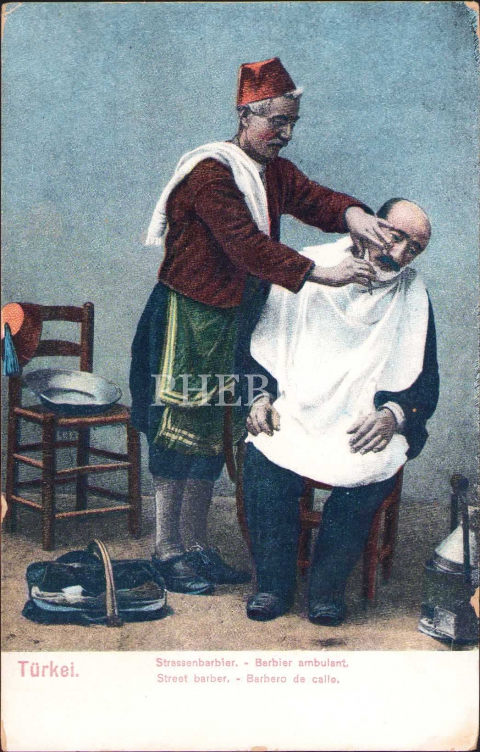 Osmanlı dönemi meslek kartpostalı: Seyyar Berber
