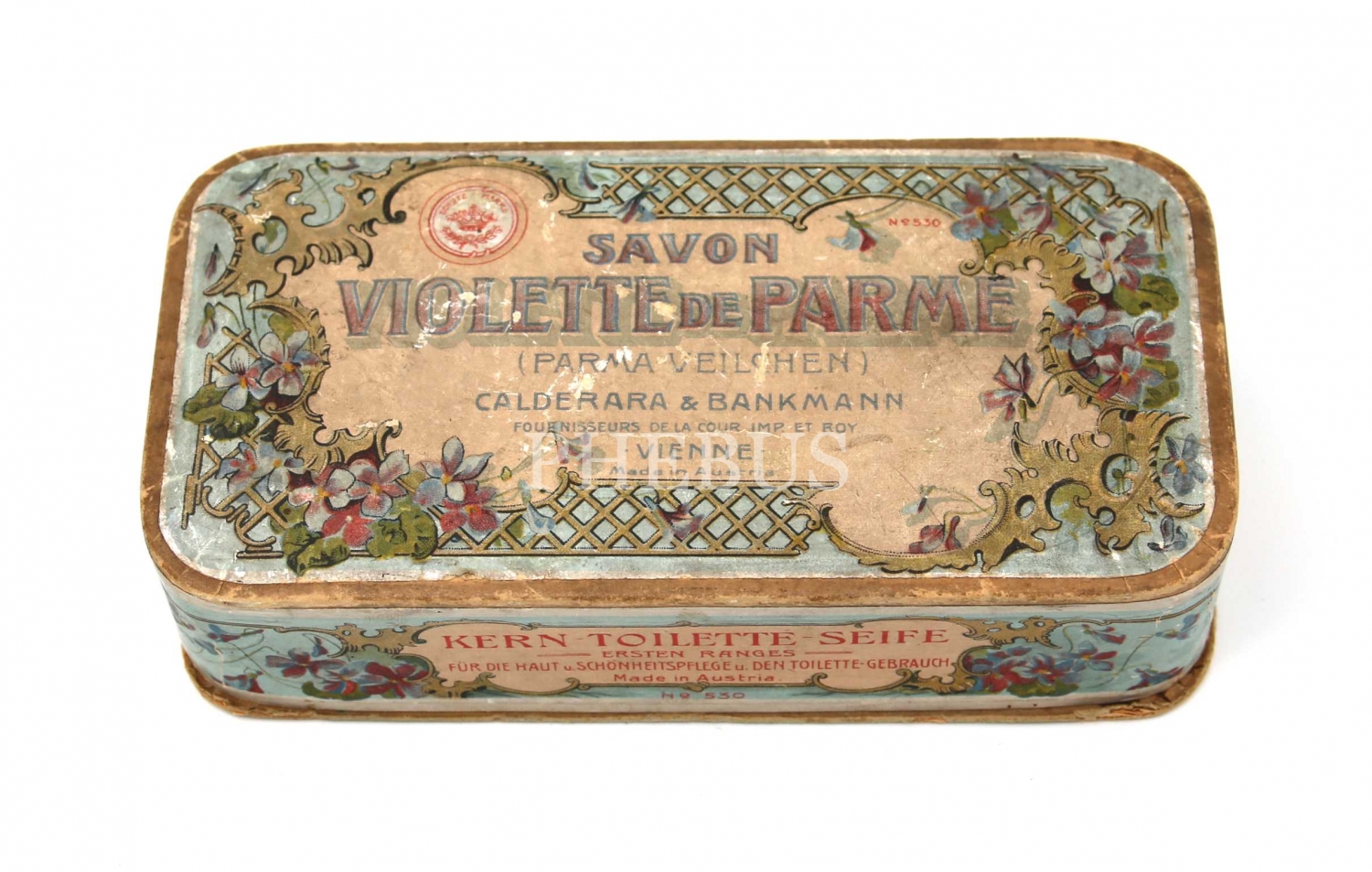 Savon Violette De Parme marka boş sabun kutusu, Made in Austria, 18x9x4 cm