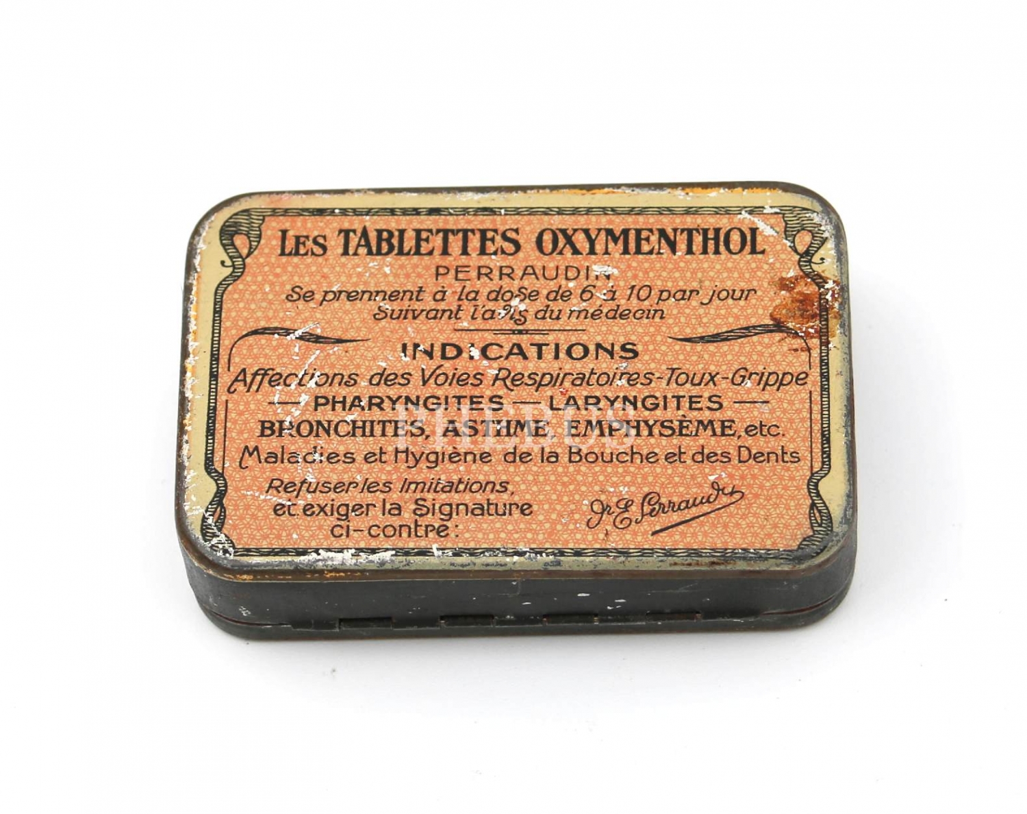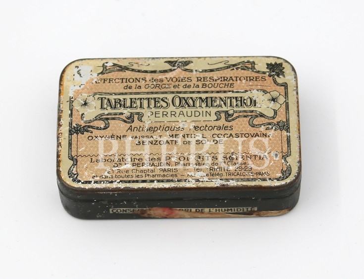 Tablettes Oxymenthol teneke ilaç kutusu, 8x5x2 cm