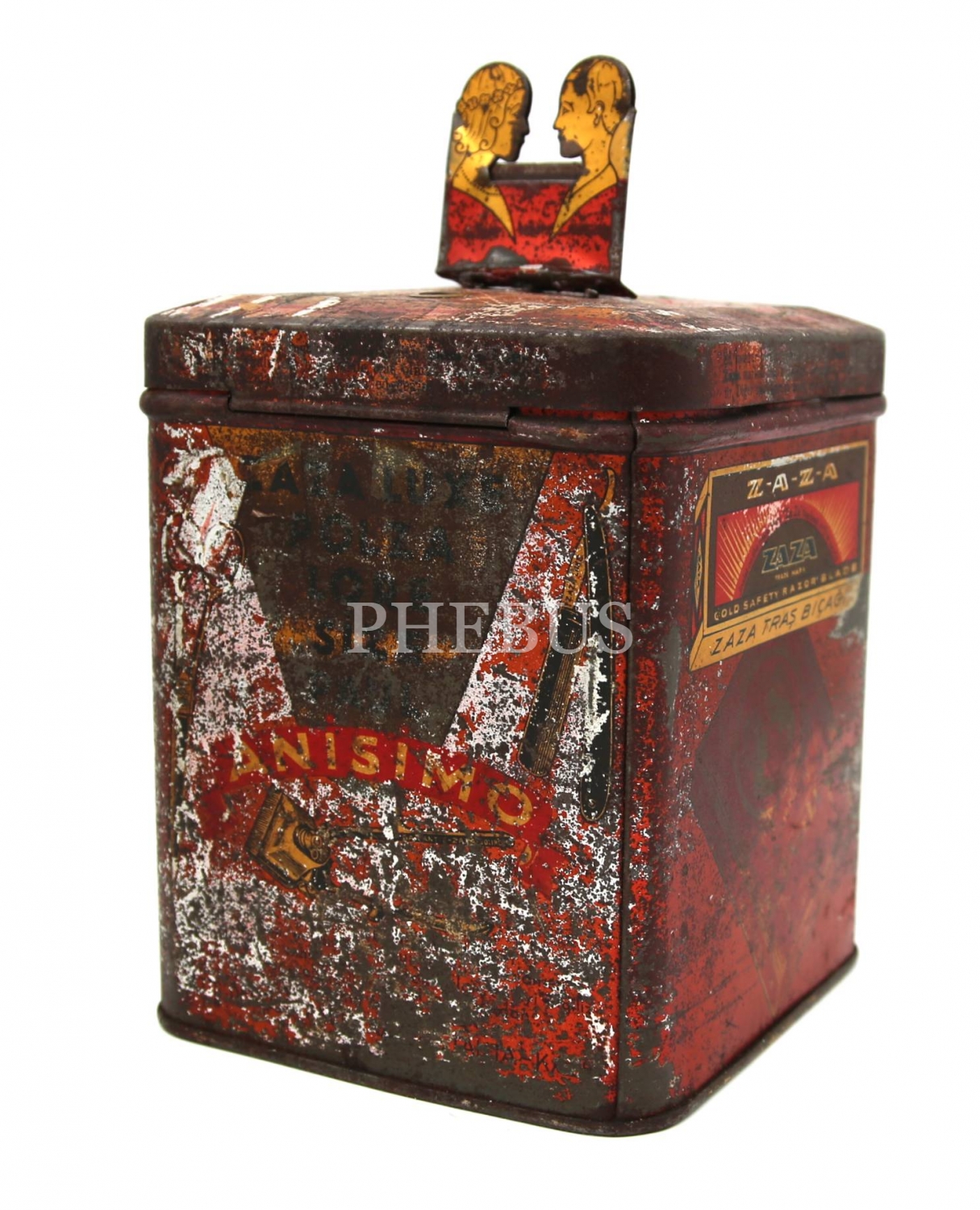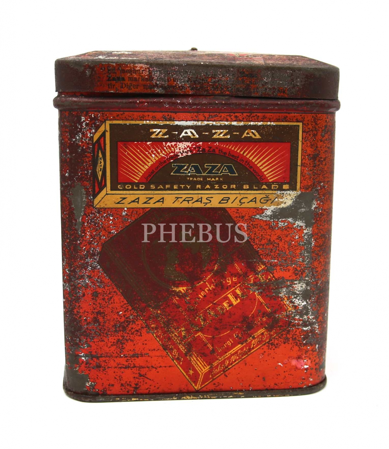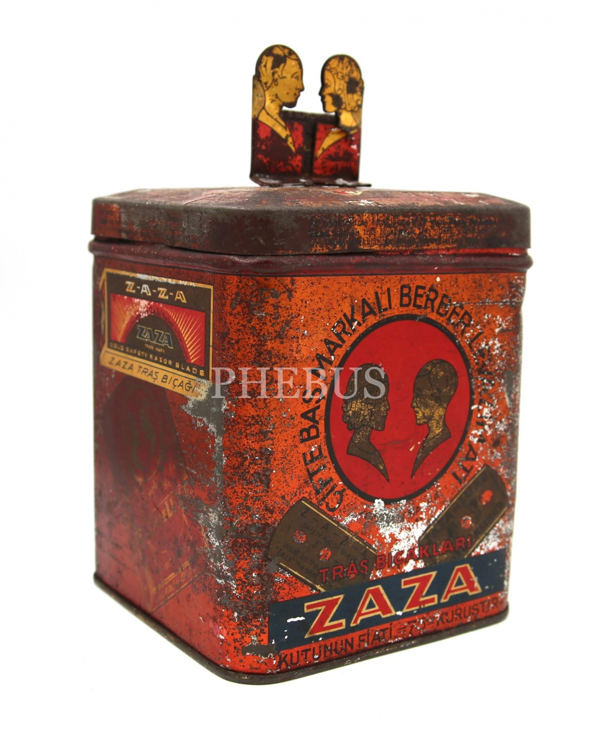 Zaza Traş Bıçakları teneke kutu, Çiftebaş Markalı Berber Levazımatı, 12x15x12 cm, haliyle