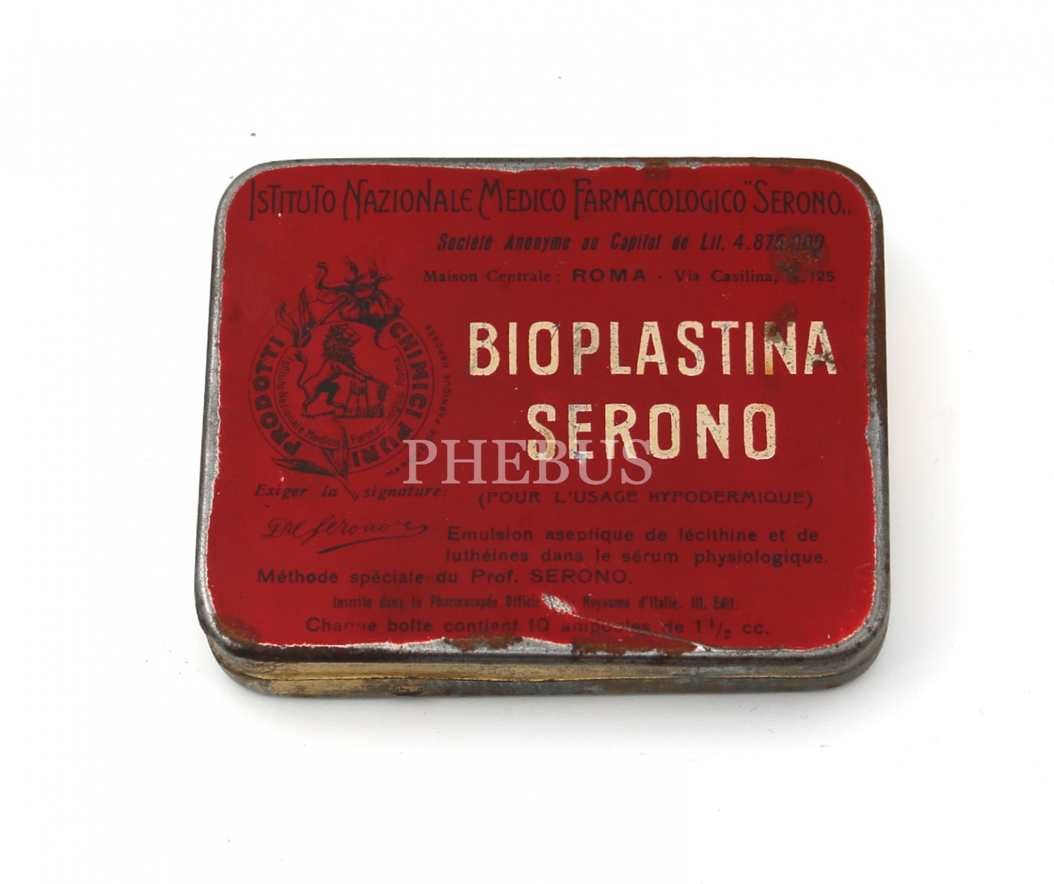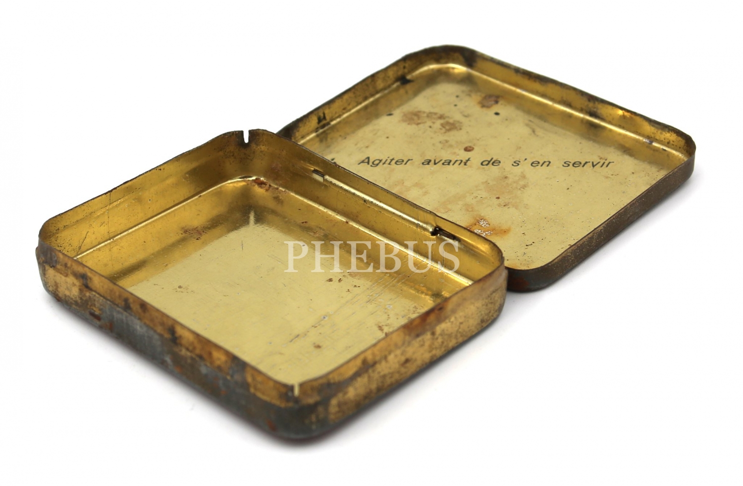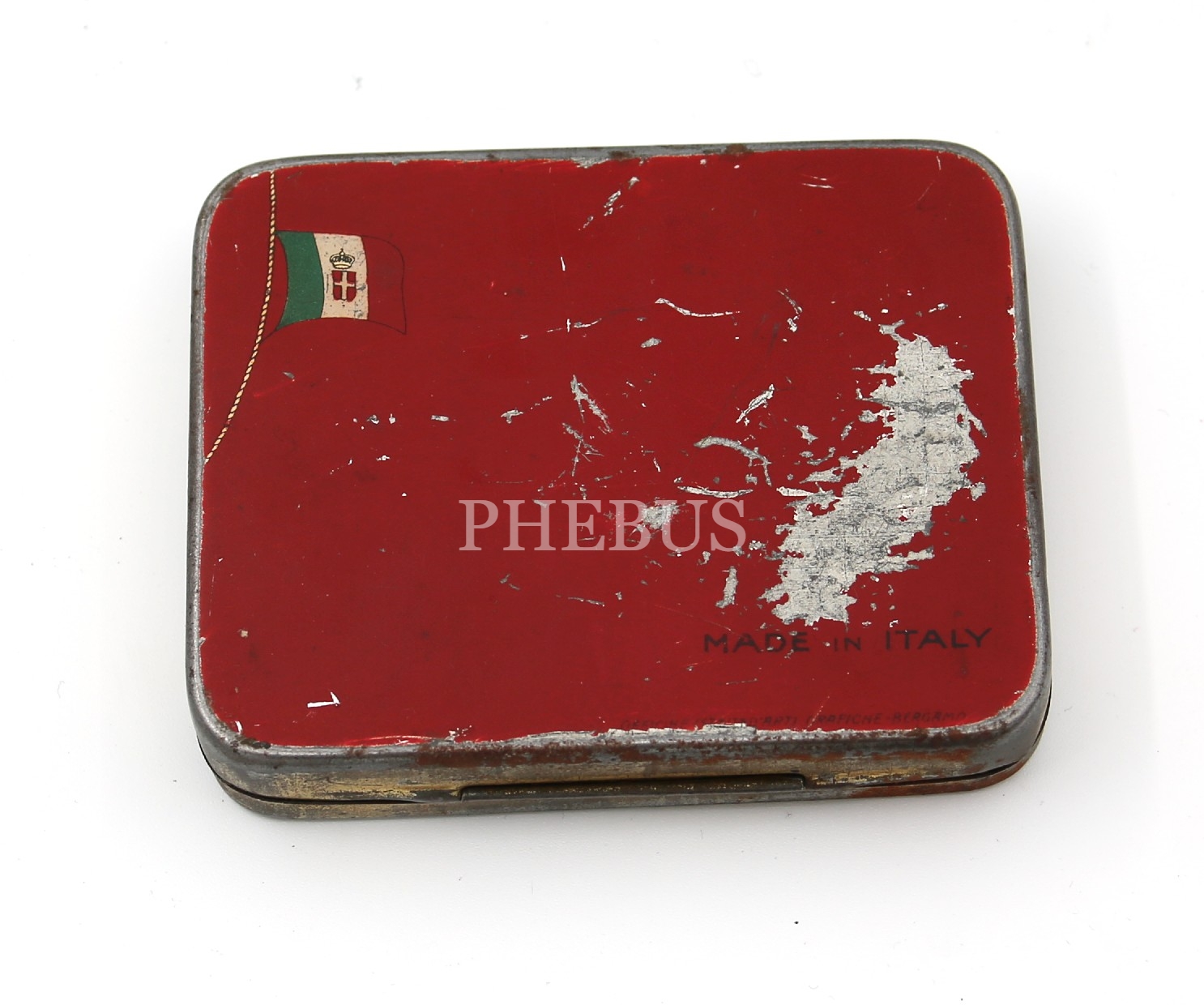 İtalya üretimi teneke ilaç kutusu, boş, 9x7x1,5 cm