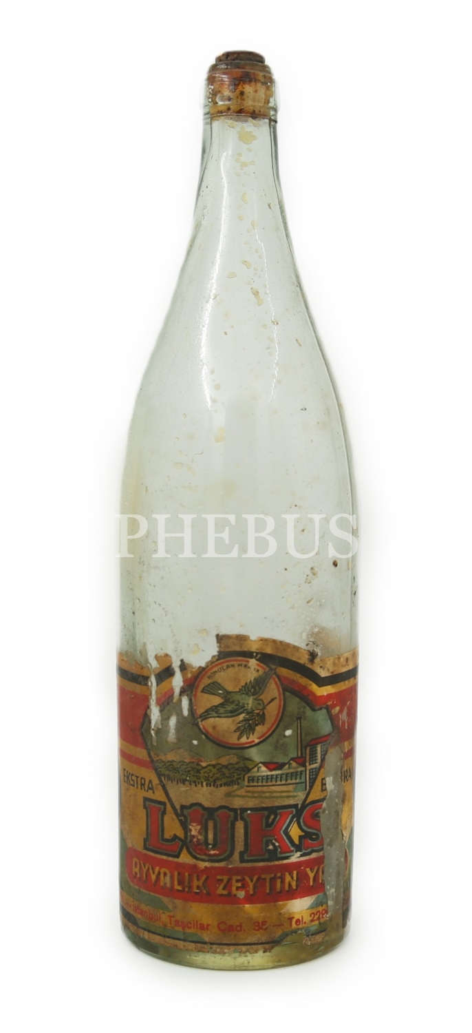 Ekstra Luks Ayvalık Zeytin Yağı etiketli boş şişe, 8x30 cm, etiketi haliyle