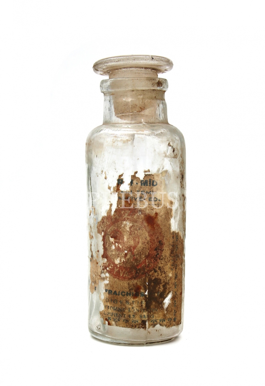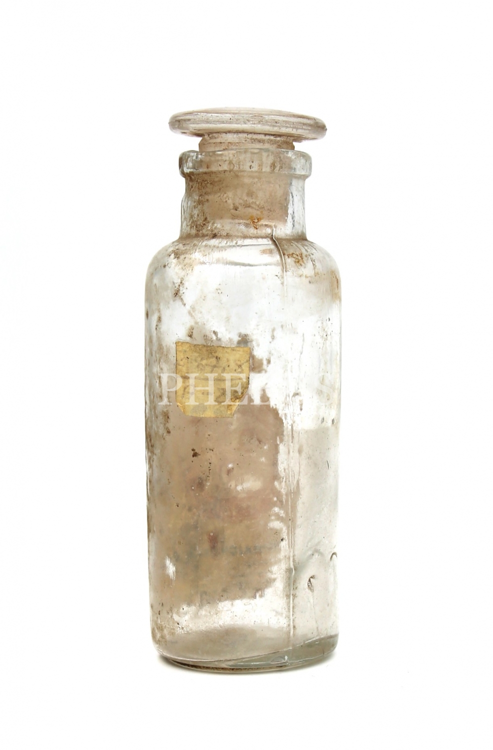 Erken cumhuriyet döneminden Türkçe ve Fransızca etiketli ecza şişesi, haliyle, 4x13 cm