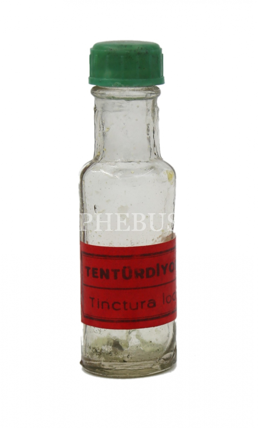 Tentürdiyod (Tinctura lodi) etiketli boş şişe, 2,5x9 cm