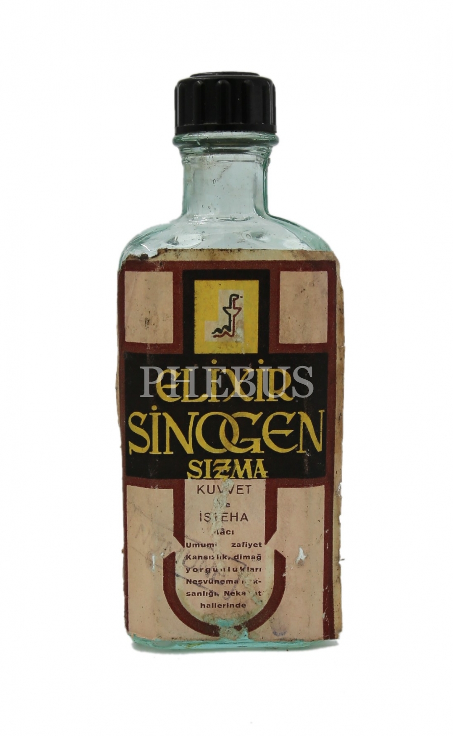 Elixir Singoren Sızma - Kuvvet ve İşteha İlacı etiketli boş şişe, 5x14x2 cm