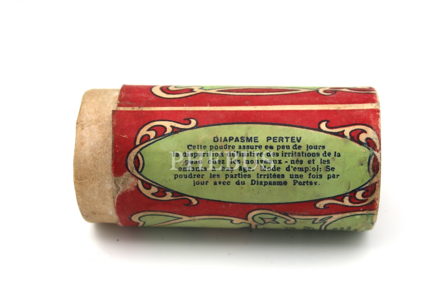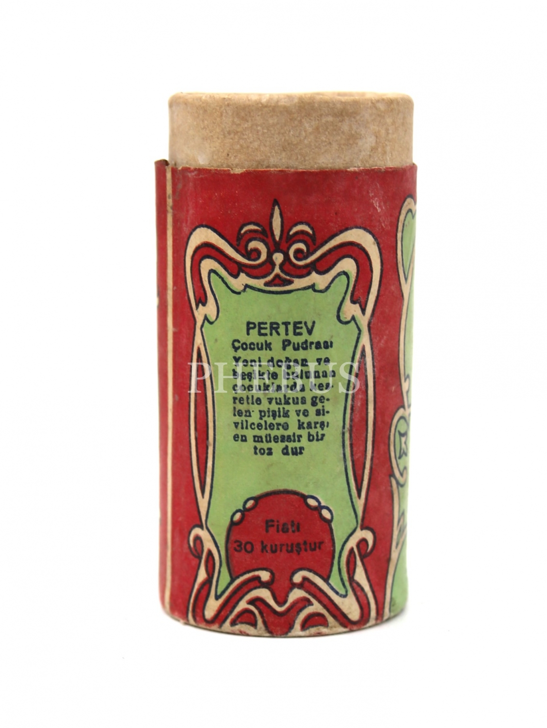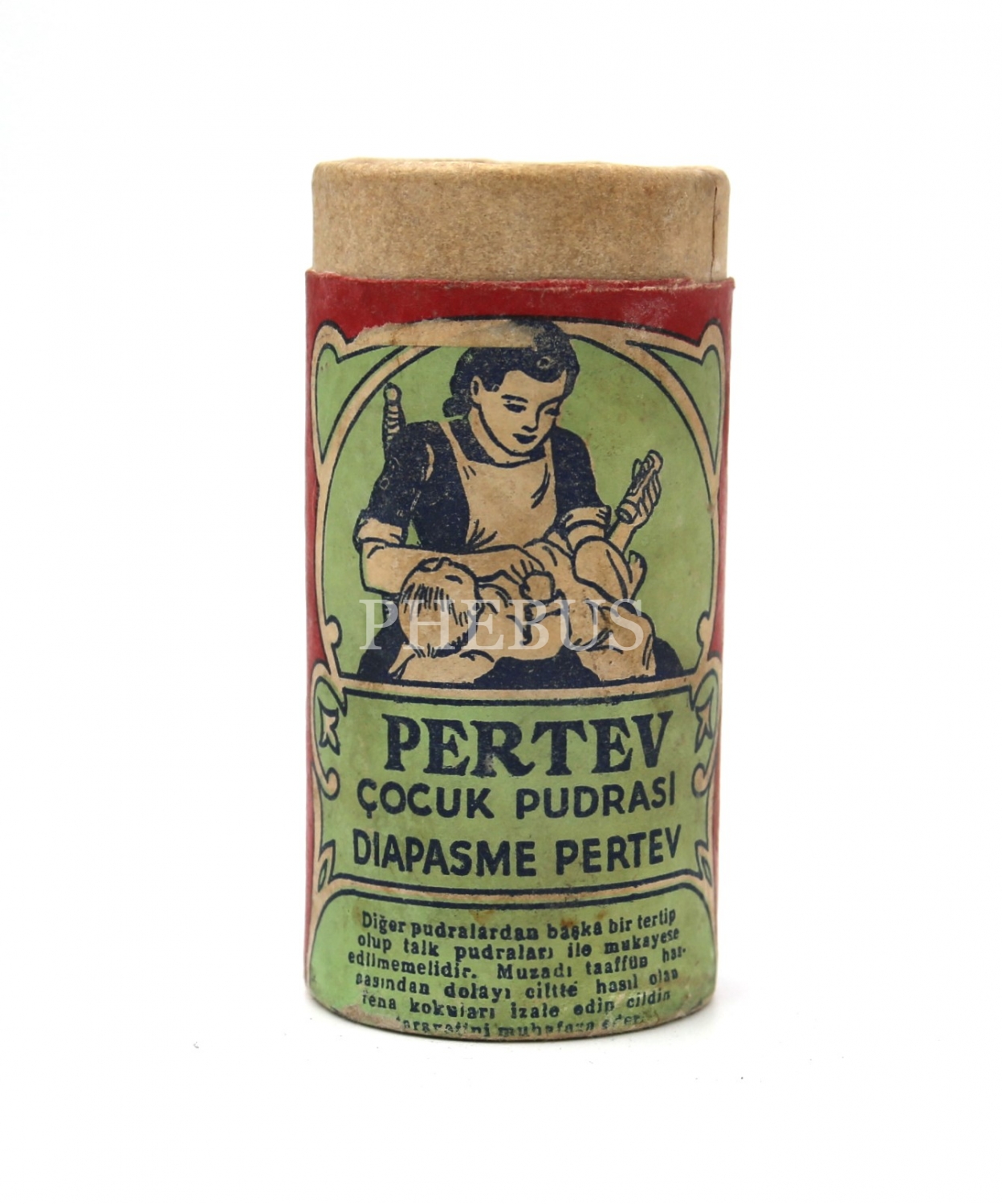 Pertev çocuk pudrası, Fransızca- Türkçe iki dilde, karton kutu, 4x9 cm