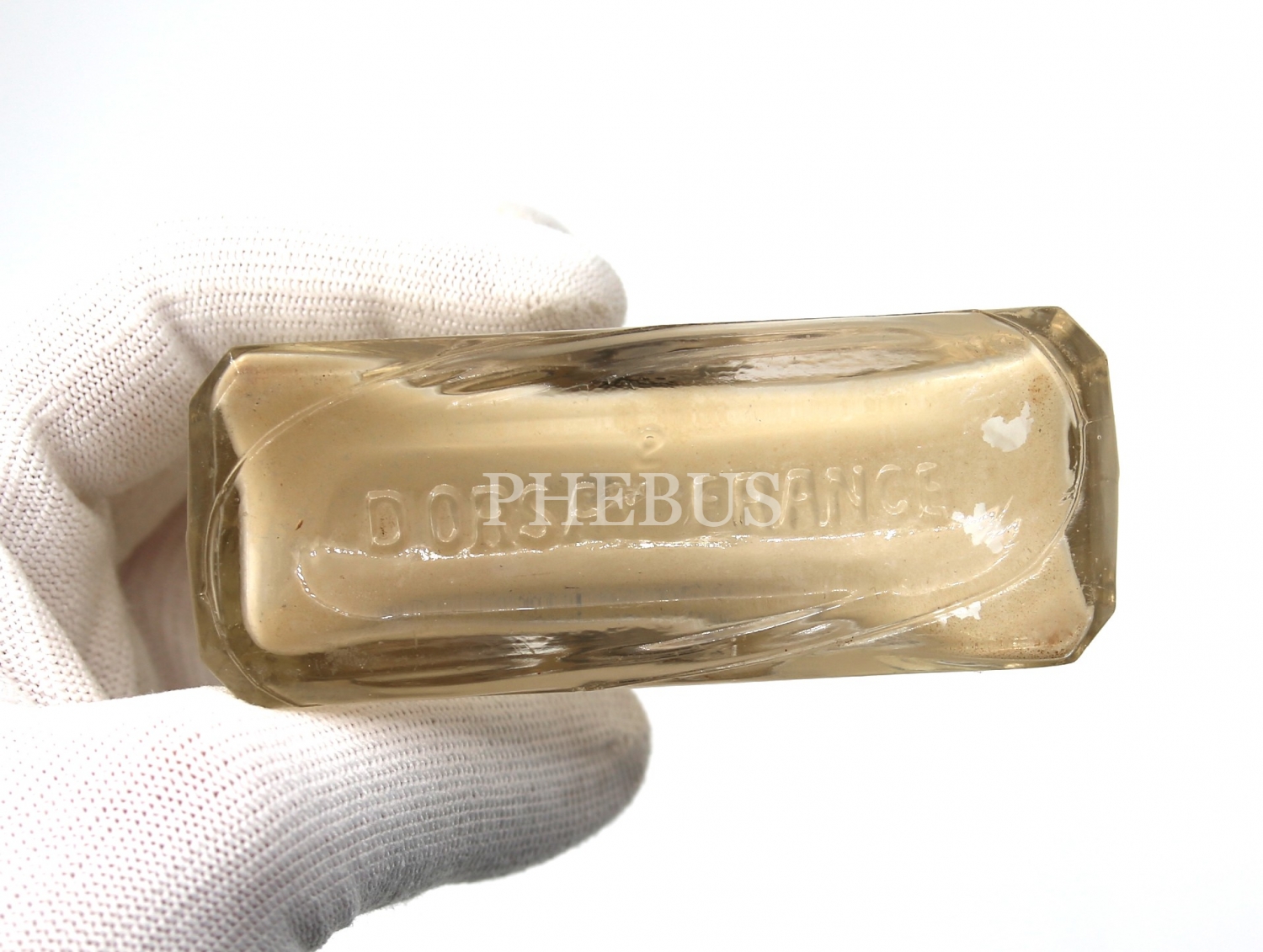 Dorsay France kabartma yazılı cam kolonya şişesi, 8x9x3 cm