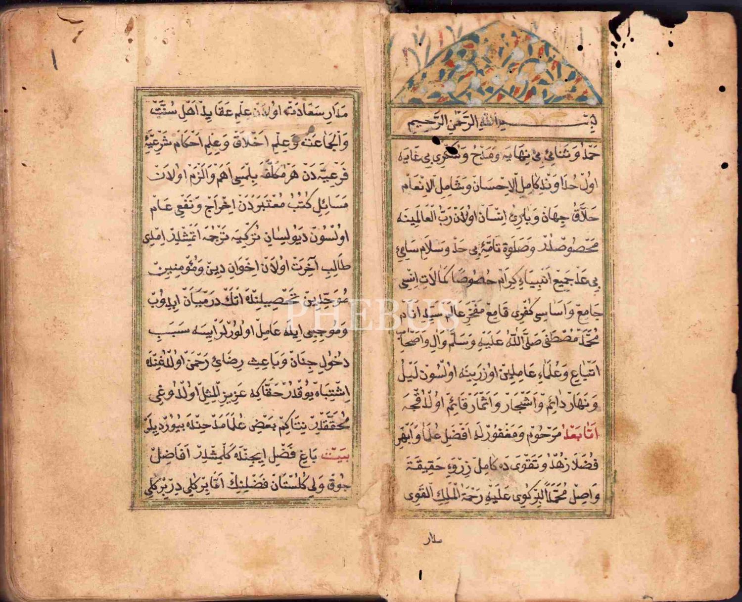 Osmanlıca el yazması Vasiyetnâme [Risale-i Birgivi] Şerhi, Şeyh Ali es-Sadri el-Konevi, şemseli cildinde haliyle, cildin ön kapağı yok, 1158 tarihli, 10x16 cm