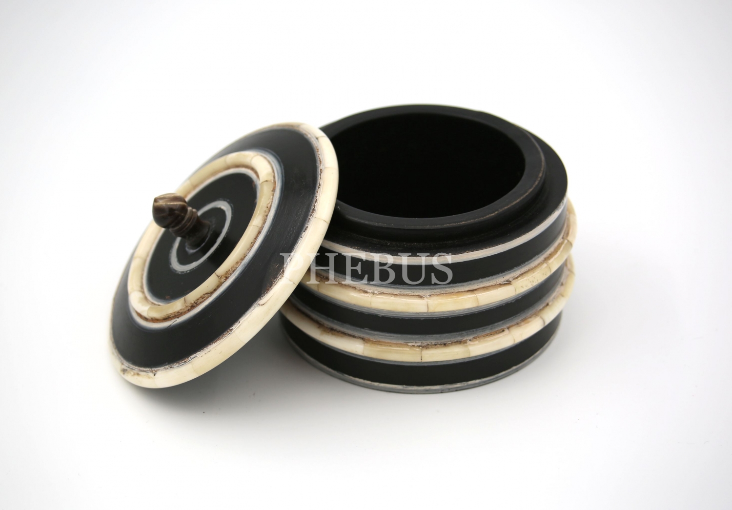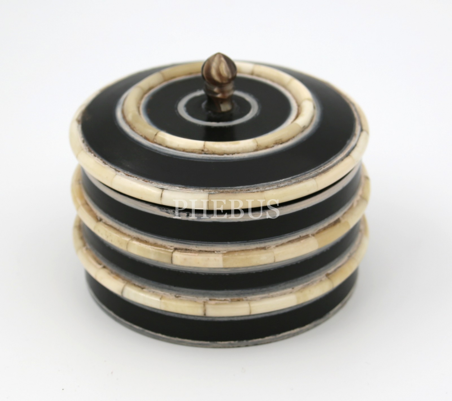 Ahşap üzerine kemik ve boynuz kakmalı kutu, 9x7 cm