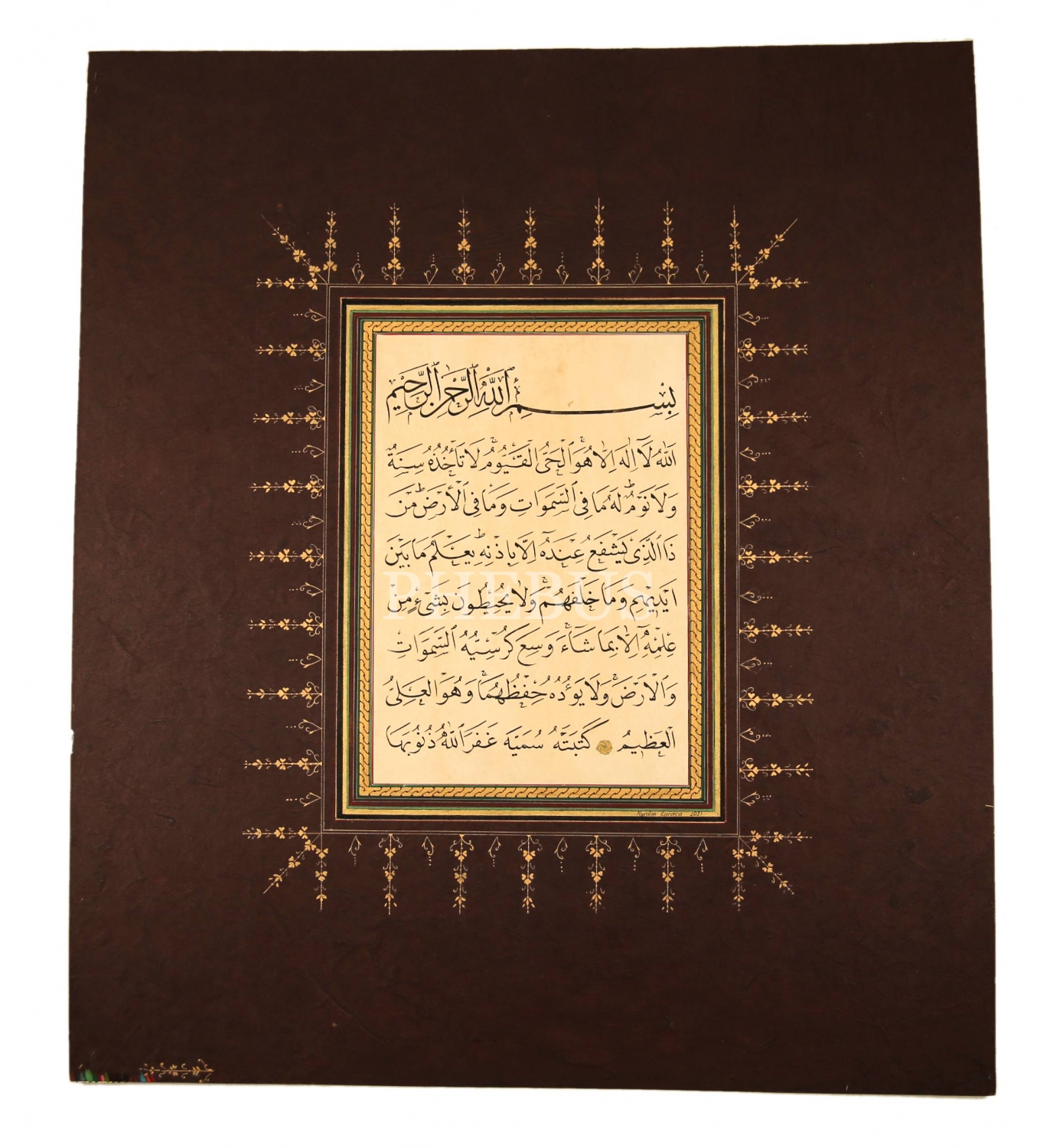 Sülüs Besmele ve Nesih Ayetü'l-Kürsi, tezhipli, yazı 15x22 cm