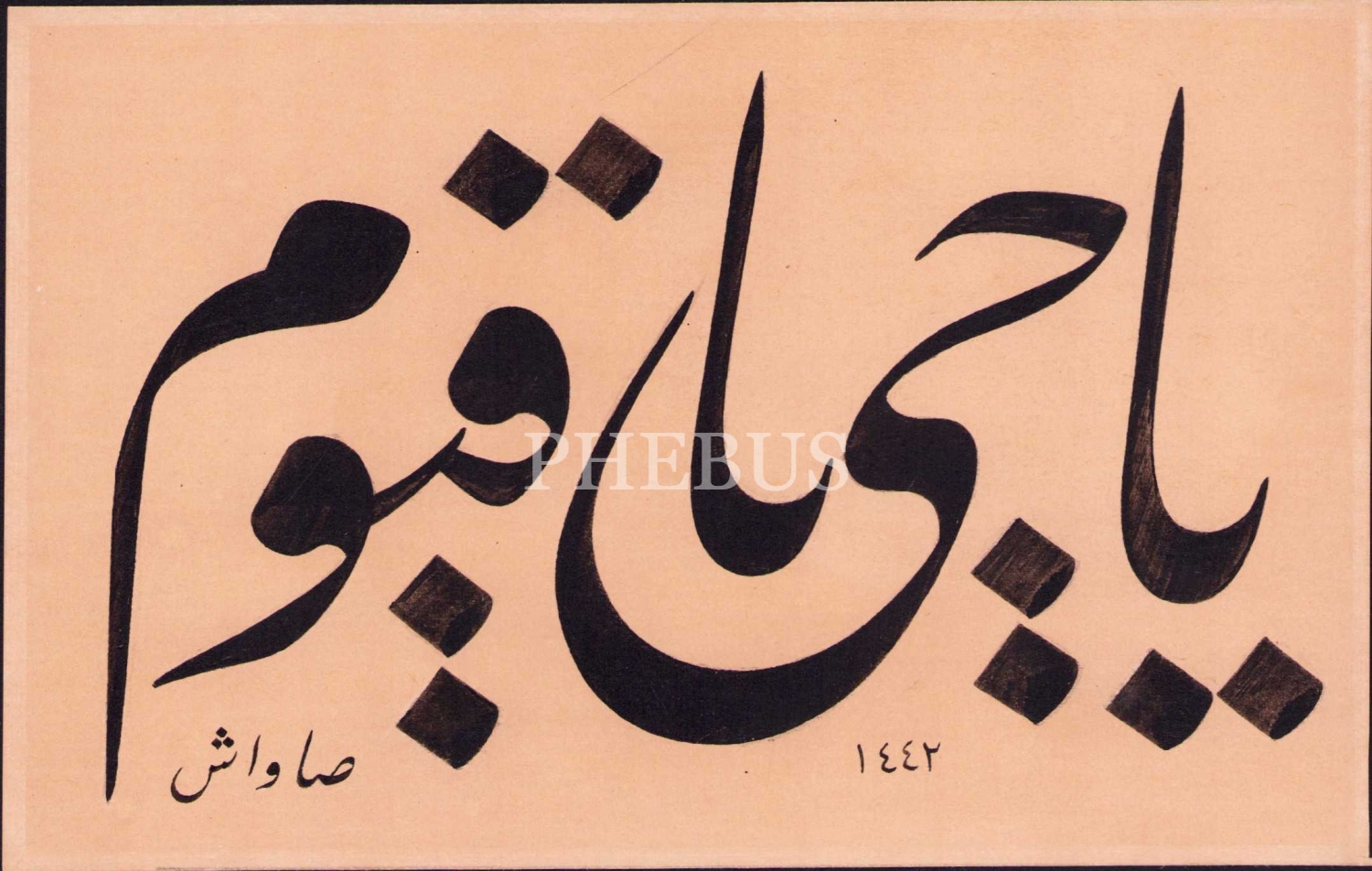 Hattat Savaş [Çevik] ketebeli Celi Talik yazı "Ya Hayy Ya Kayyûm" 1442, 18x11 cm