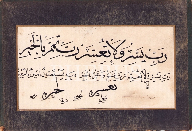 Sülüs Rabbi Yessir Hurufat Meşki, hoca çıkartmaları mevcud, ebrulu, 19x10 cm
