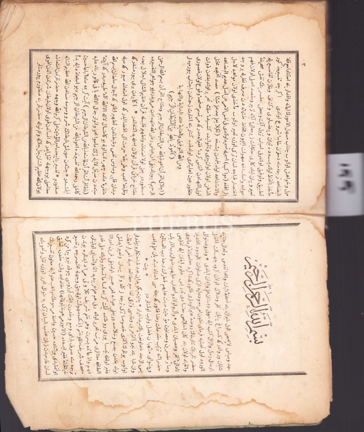 Osmanlıca Taş Baskı İsmail Ferruh Efendi'nin Mevâkib Kur'ân Tefsiri, 526 sayfa, cildi yok, sayfaları haliyle, 16x24 cm