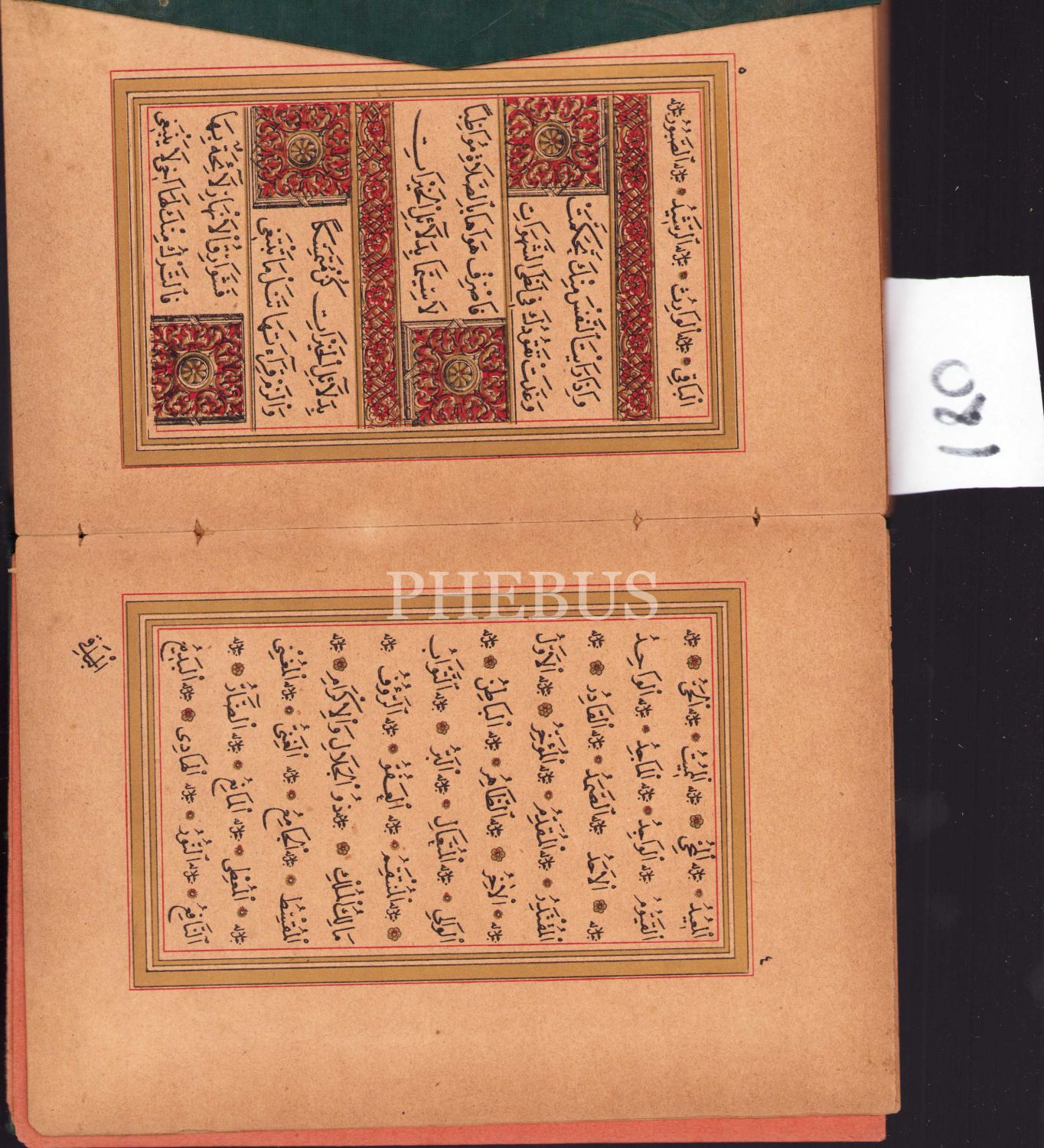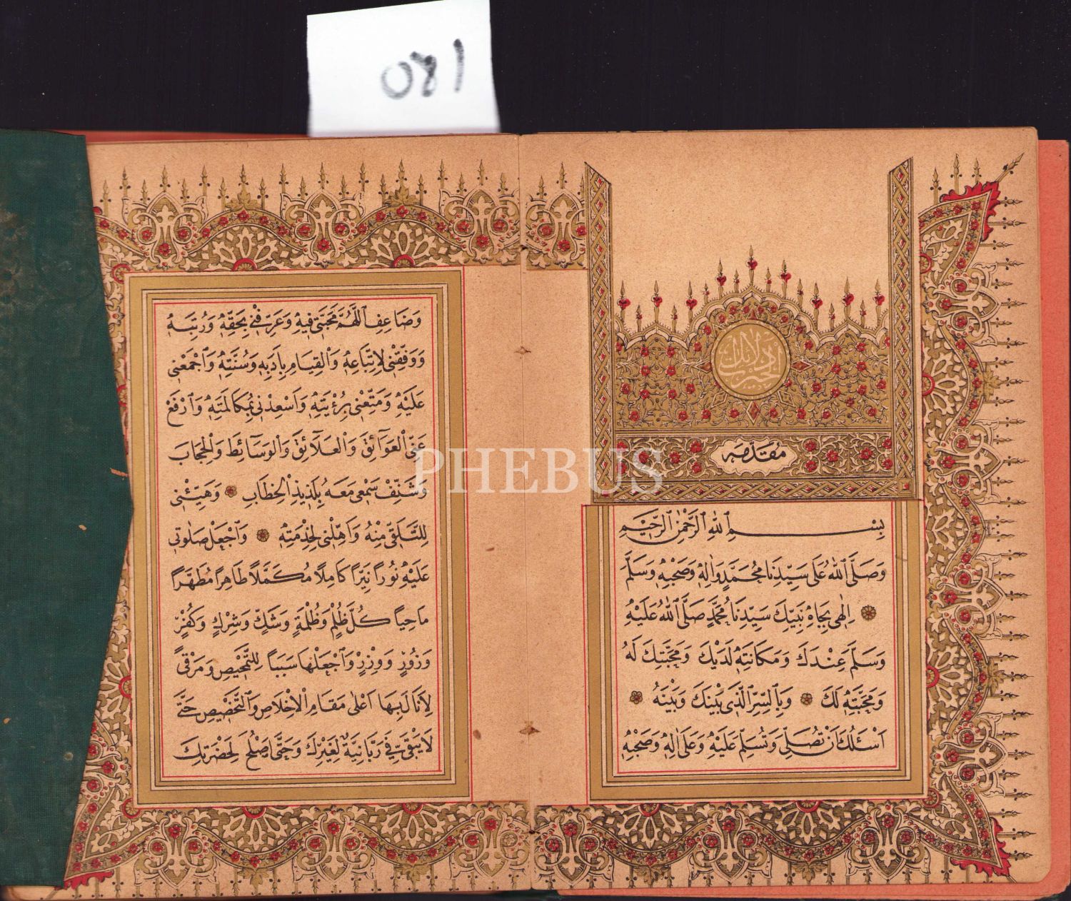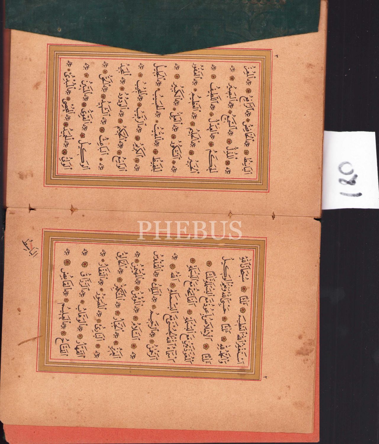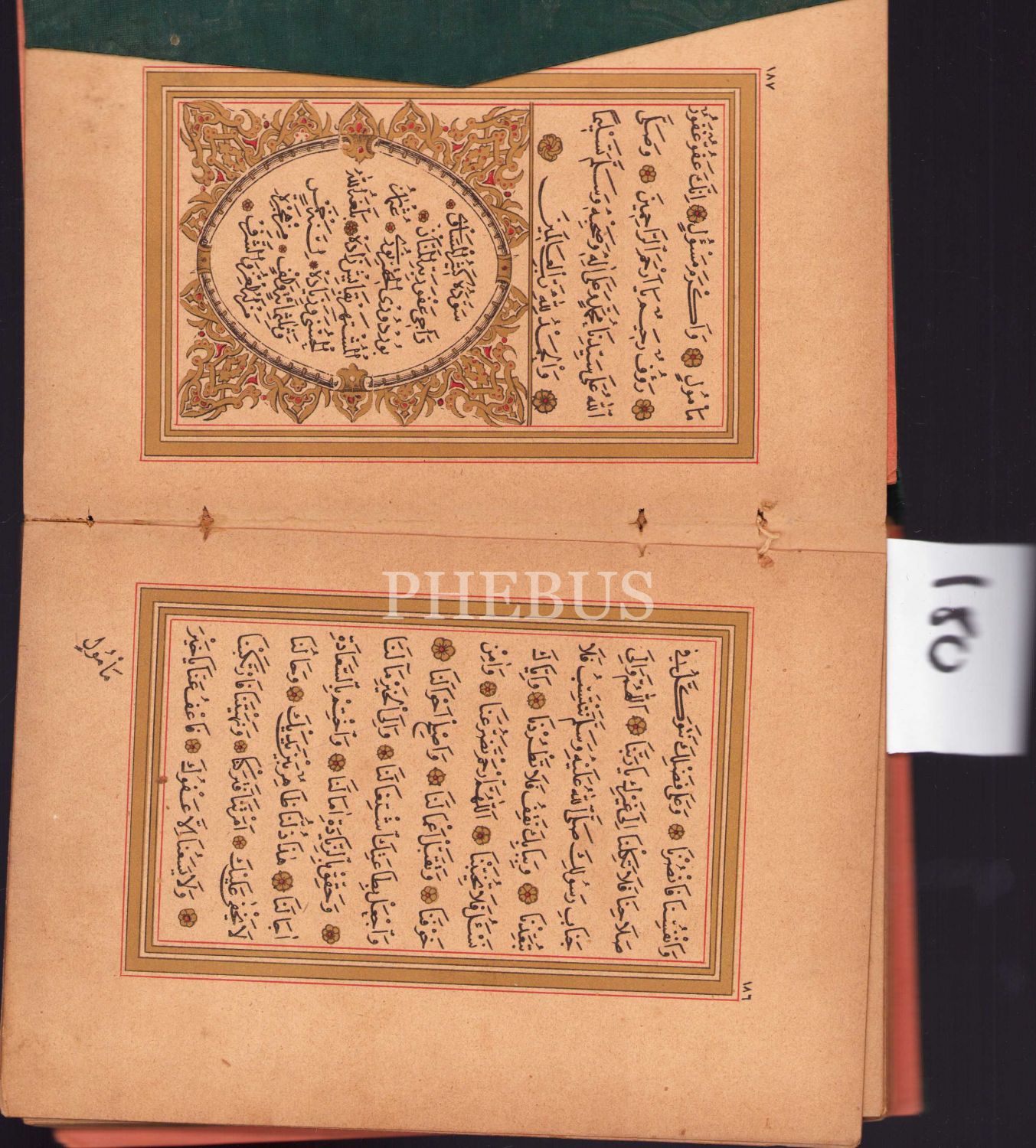 Kayışzade Hafız Osman Nuri Burduri'nin hattıyla taş baskı Delâilü'l-Hayrât, altın cetvelli, 12x18,5 cm.