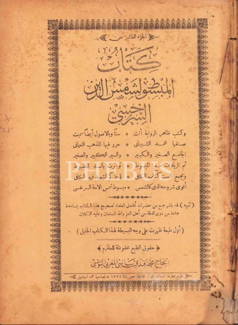 el-Mebsût [Üçüncü Cild], Serahsi, Mısır baskı, 219 sayfa, 19x28 cm