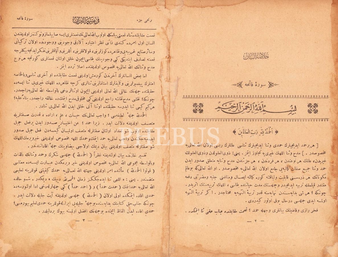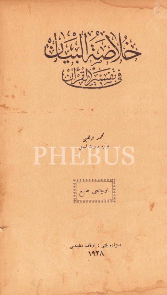 Hulâsatü'l-Beyân fî Tefsiri'l-Kur'ân [Birinci Cild], Konya Mebusu Mehmed Vehbi, Evkaf-ı İslamiye Matbaası, 1927 tarihli, 249 sayfa, 16x24 cm