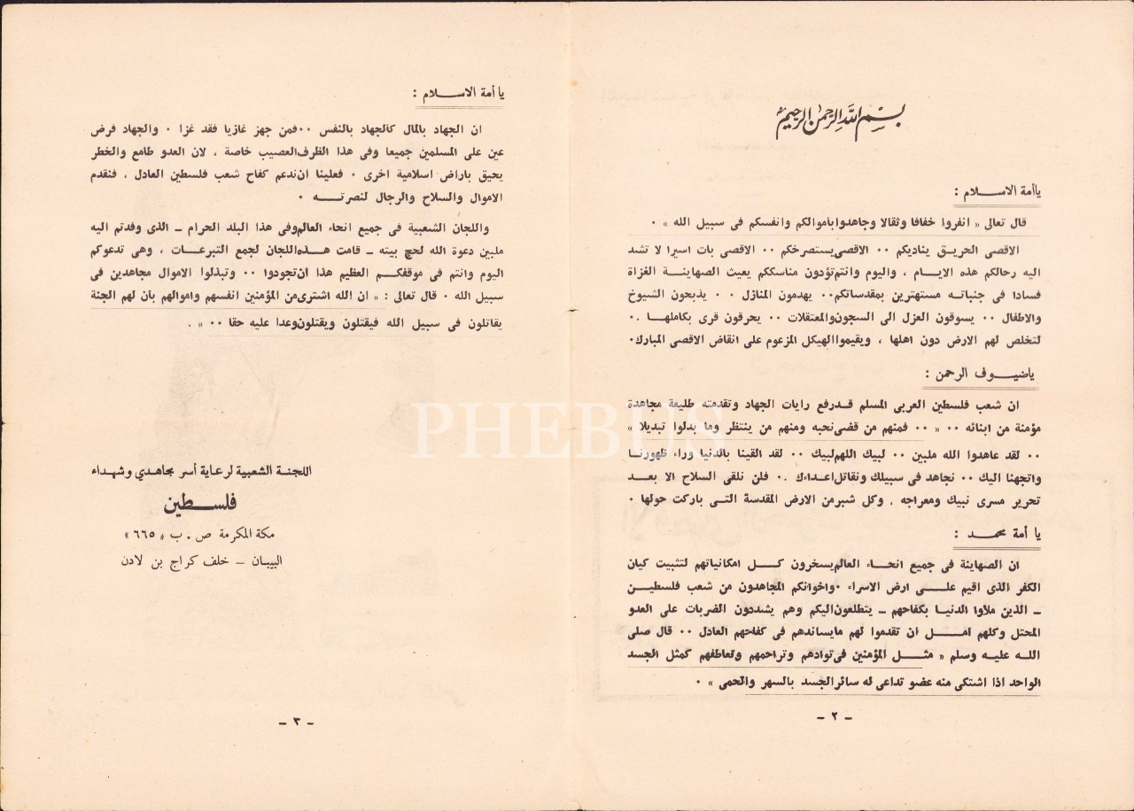 Filistin Mücahid ve Şehitleri Gözetme Komisyonu'nun Mekke'deki Hacılara Yaptığı Çağrı Metni "Aksa yanıyor ve size haykırıyor", 17x24 cm