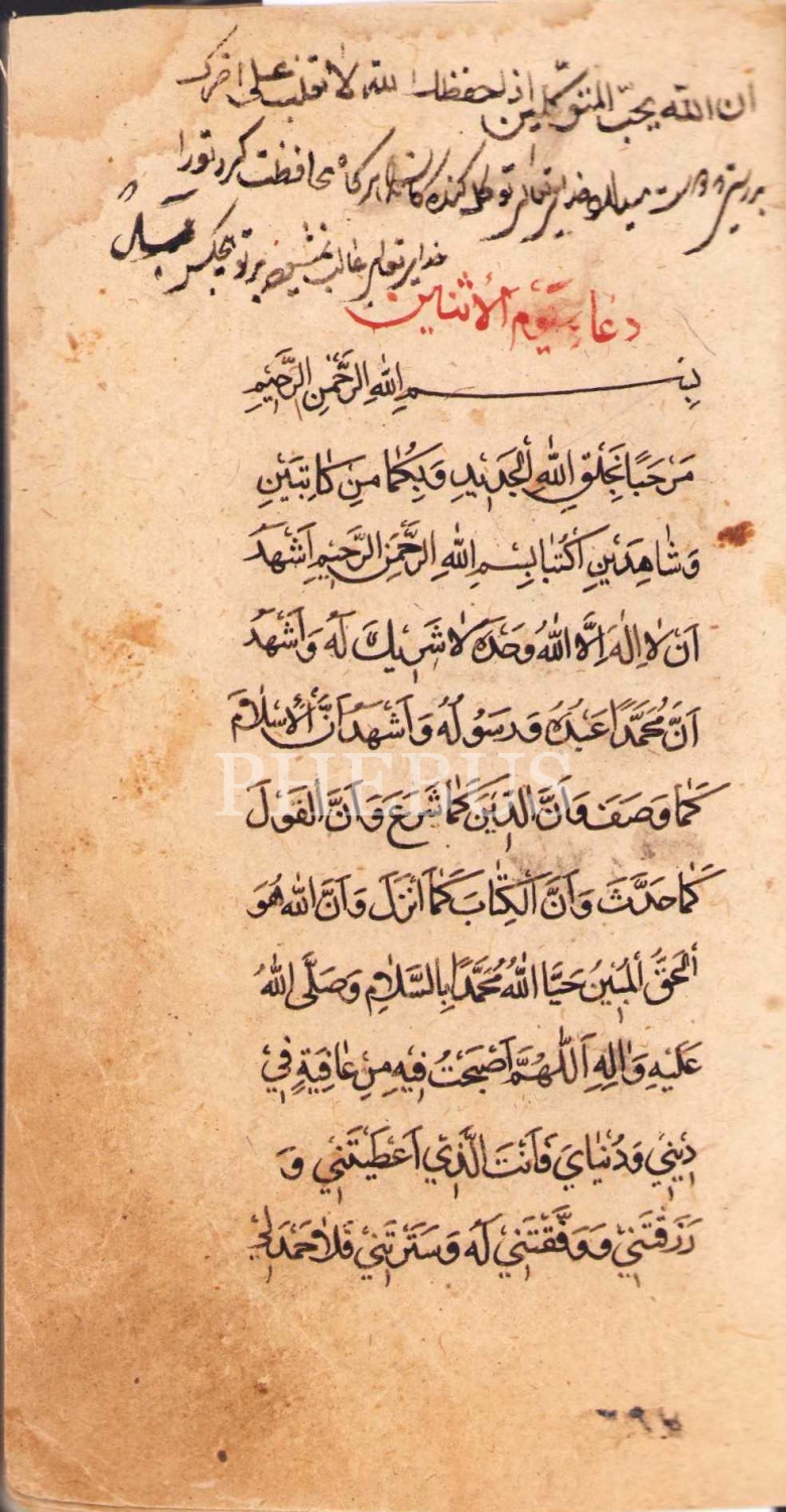 Hazreti Ali'ye nisbet edilen Sahife-i Seccadiye isimli dua mecmuası, el yazma, sondan eksik, ebru kapaklı, 9 varak, 9x15 cm
