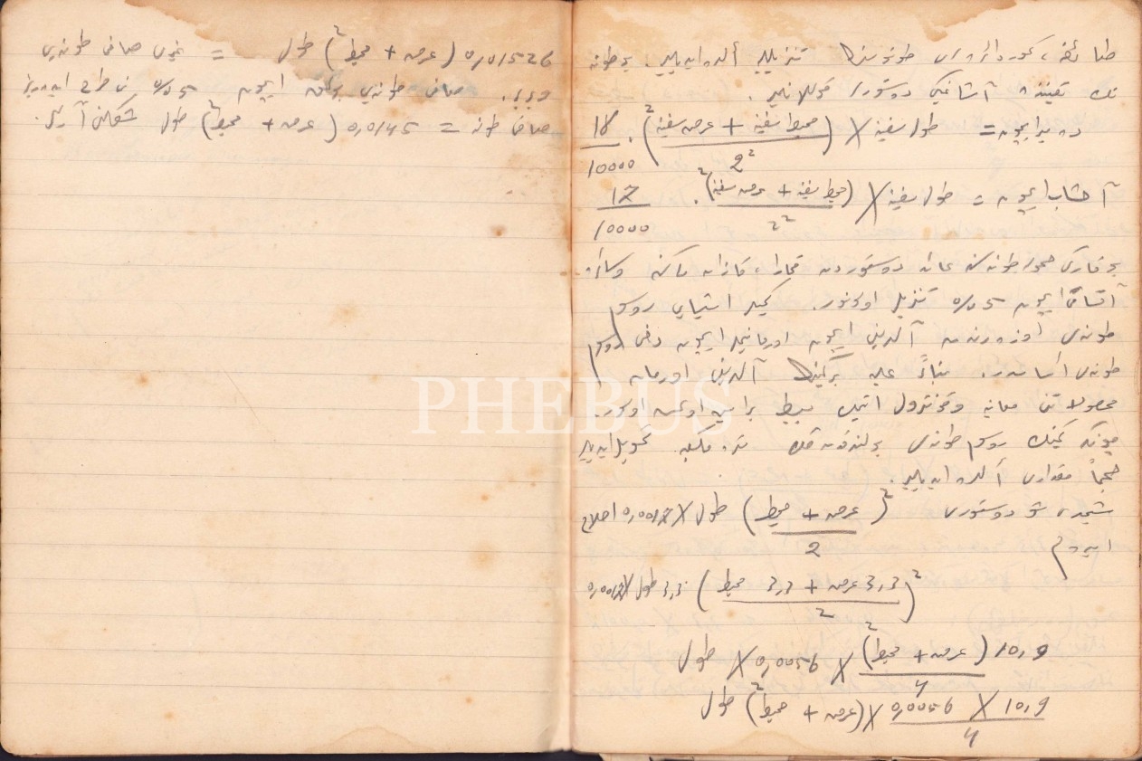 Osmanlıca Çizimler ve Matematik Hesaplamaları İçeren Defter, 51 varak, 15x19 cm