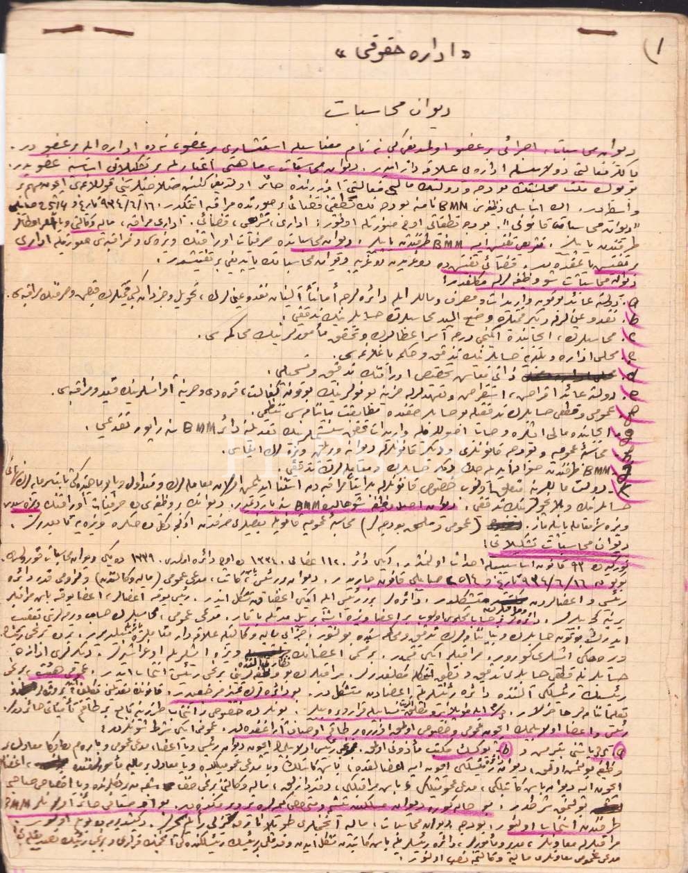 Osmanlıca İdare Hukukuna dair notlar, 19 varak, 16x20 cm