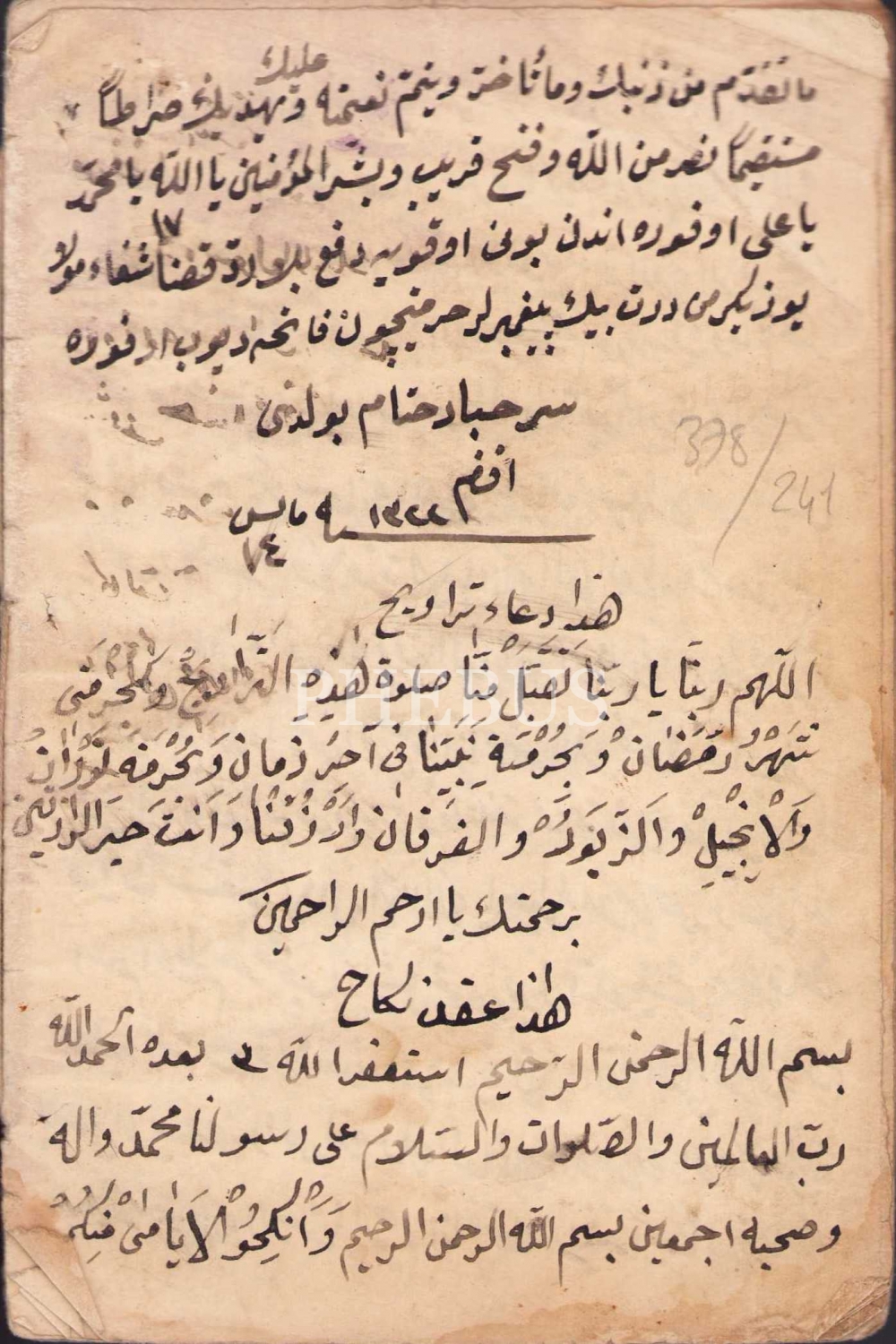 Arapça dua risalesi, 1322 tarihli, 10 varak, 12x18 cm