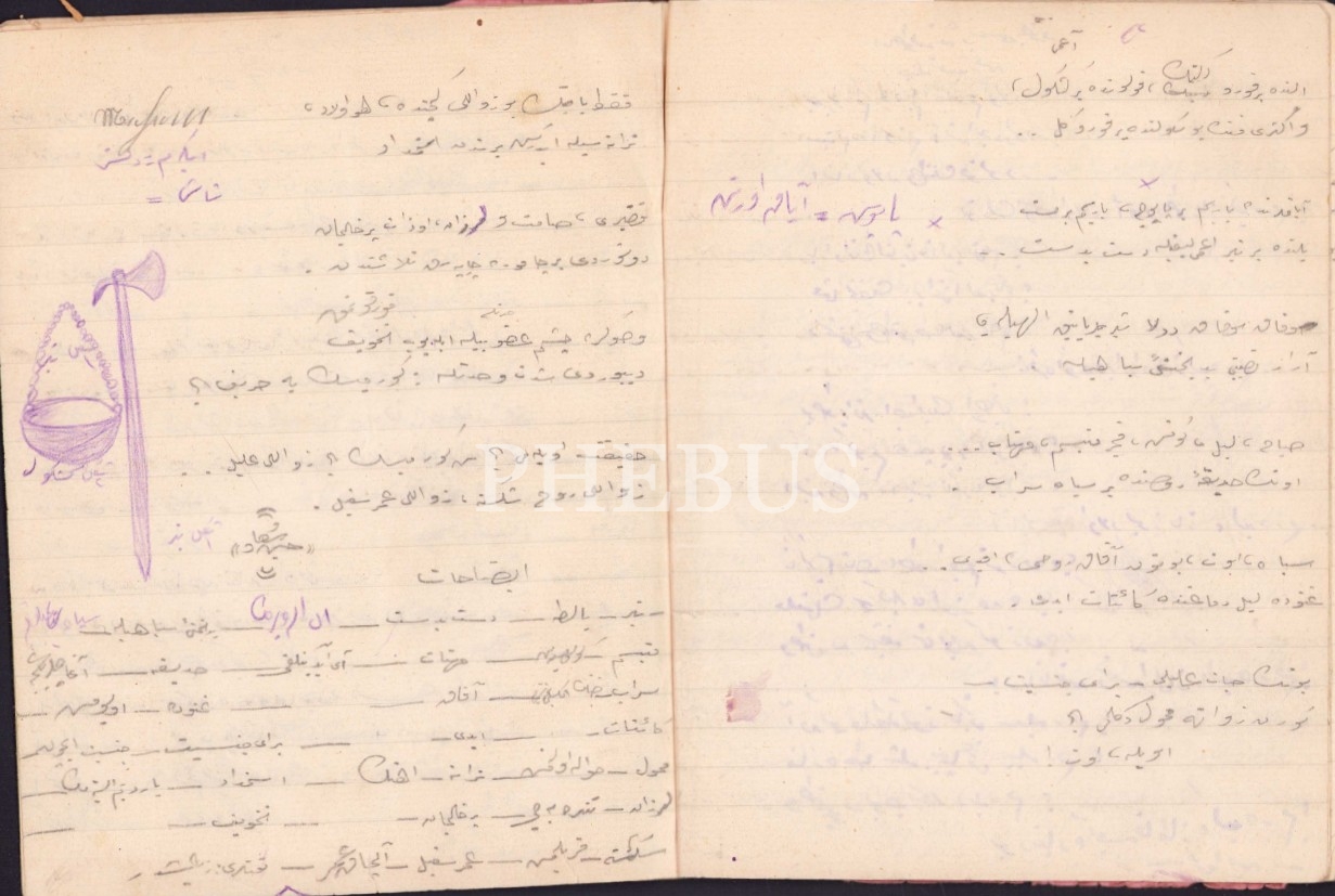 Osmanlıca Tekke Kültürünü yansıtan tasavvufi konulu çizimler İçeren, şiirler yazılı defter. 15 varak, 16x20cm