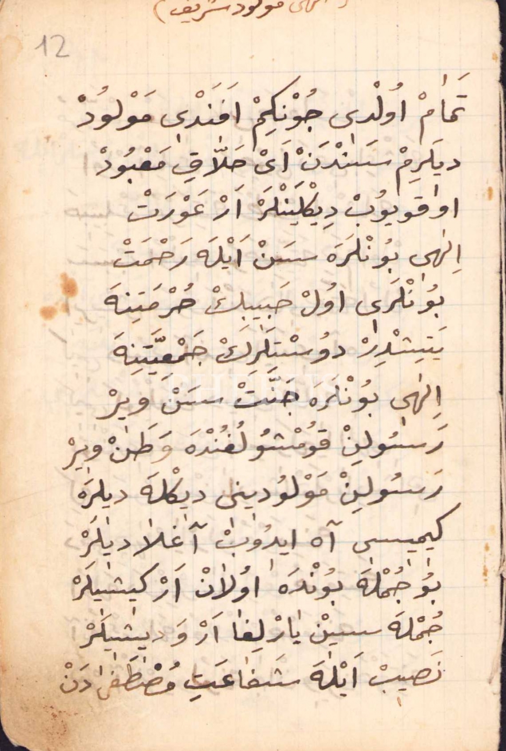 Osmanlıca-Arapça Mevlüd-i Şerif hatime duası, 10 syf., 10x14 cm