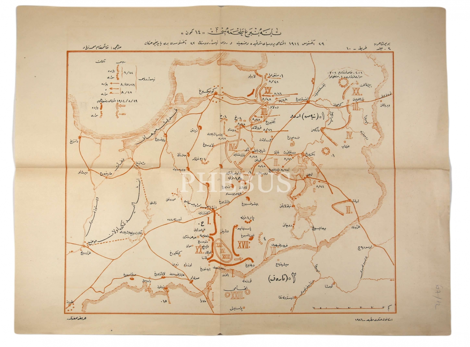Osmanlıca Tannenberg Melhamesi (14 Gün) savaş haritası, İstanbul Askeri Matbaa, 1926, 36x48 cm