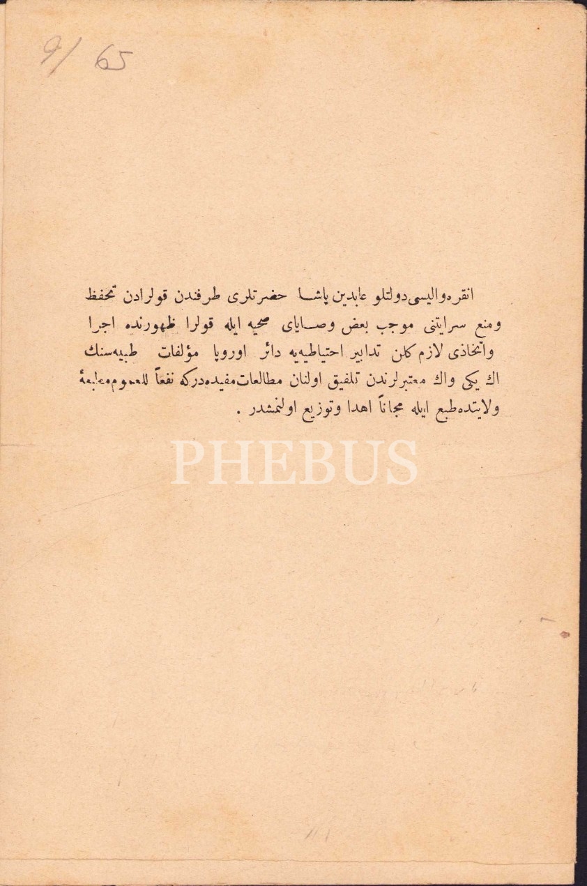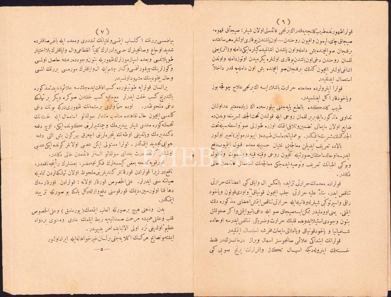 Osmanlıca Kolera hakkında bilgilendirme ve tavsiye rehberi, Vilayet Matbaası, 7 syf., 14x21 cm