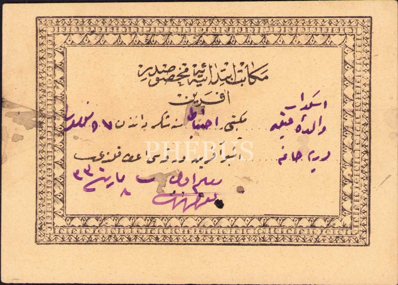 Osmanlıca Aferin kağıdı, 1330, 8x11 cm