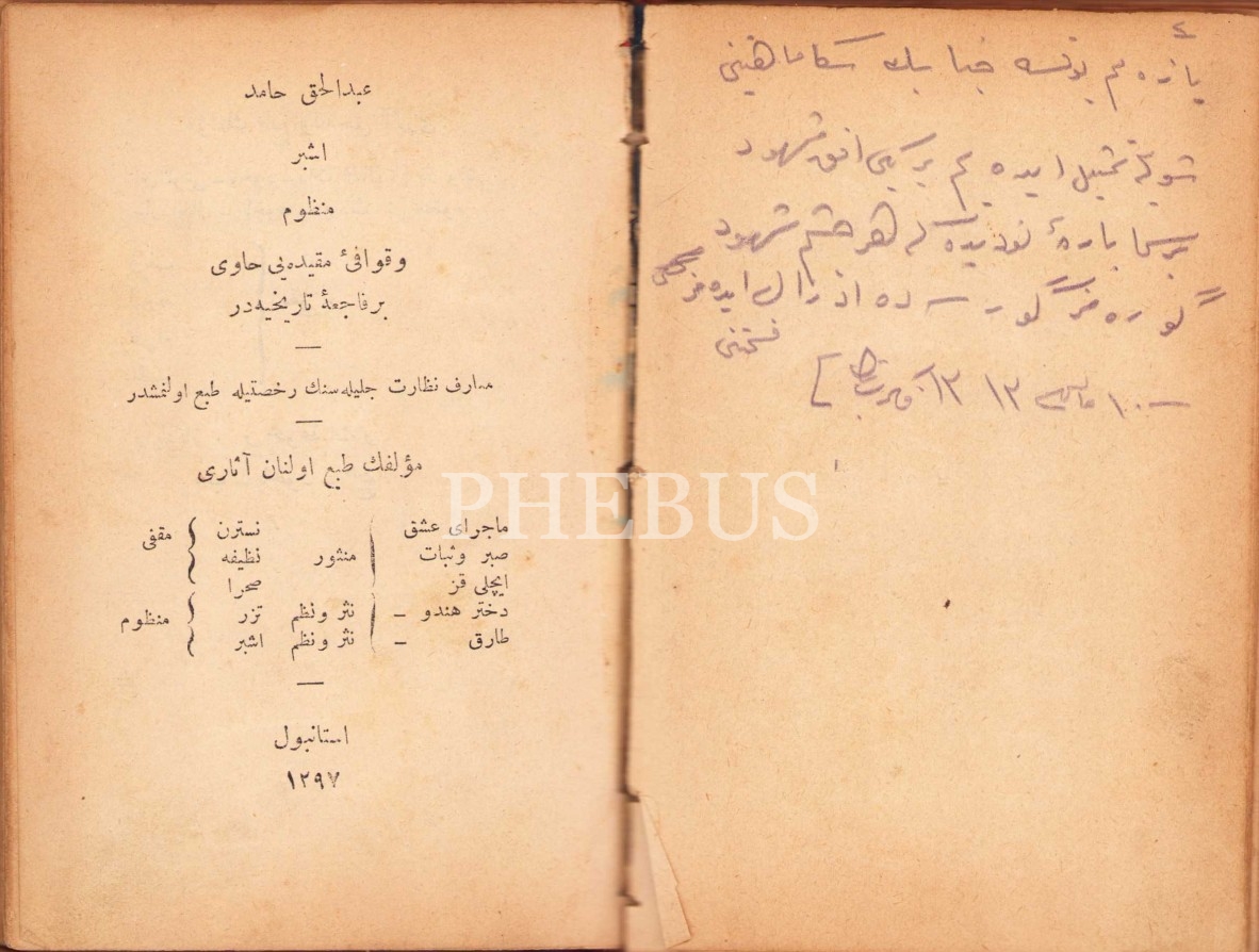 Sahrâ, Abdulhak Hâmid, Mihran Matbaası, İstanbul 1296, 59 syf.; Eşber, Abdulhak Hâmid, İstanbul 1297, 160 syf., 10x16 cm