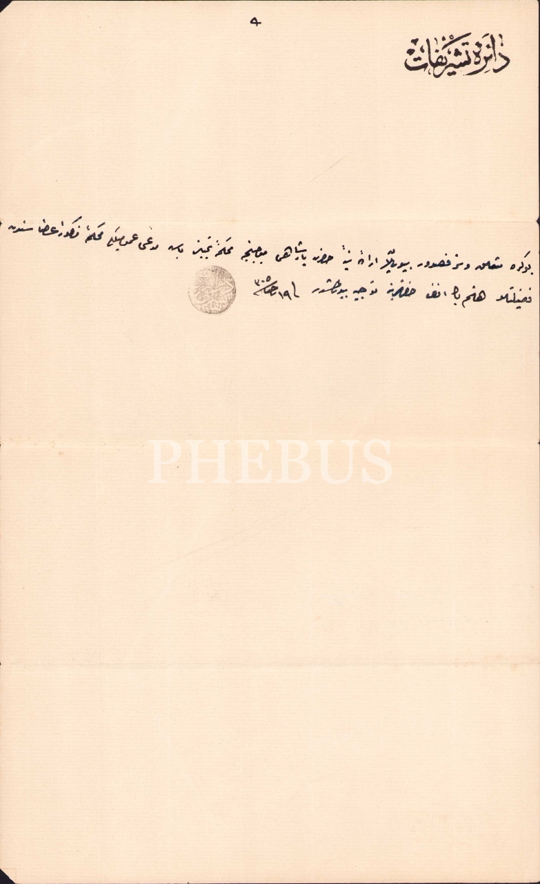 Osmanlıca Dâire-i Teşrîfât antetli tayin belgesi, 1305, 20x32 cm