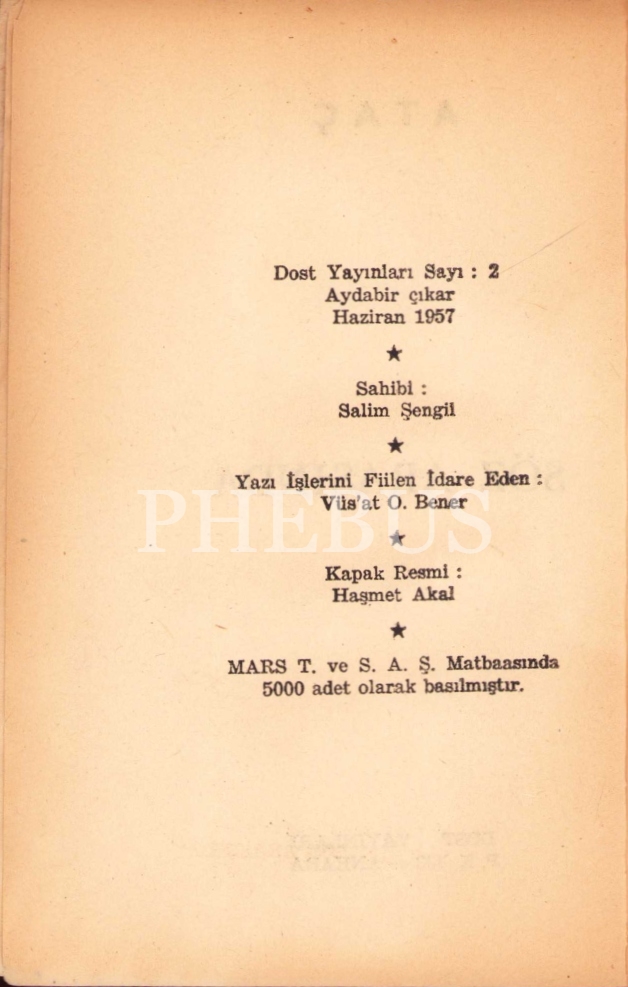 Söz Arasında, Nurullah Ataç, Dost Yayınları - Ankara 1957, 83 sayfa, 12x17 cm