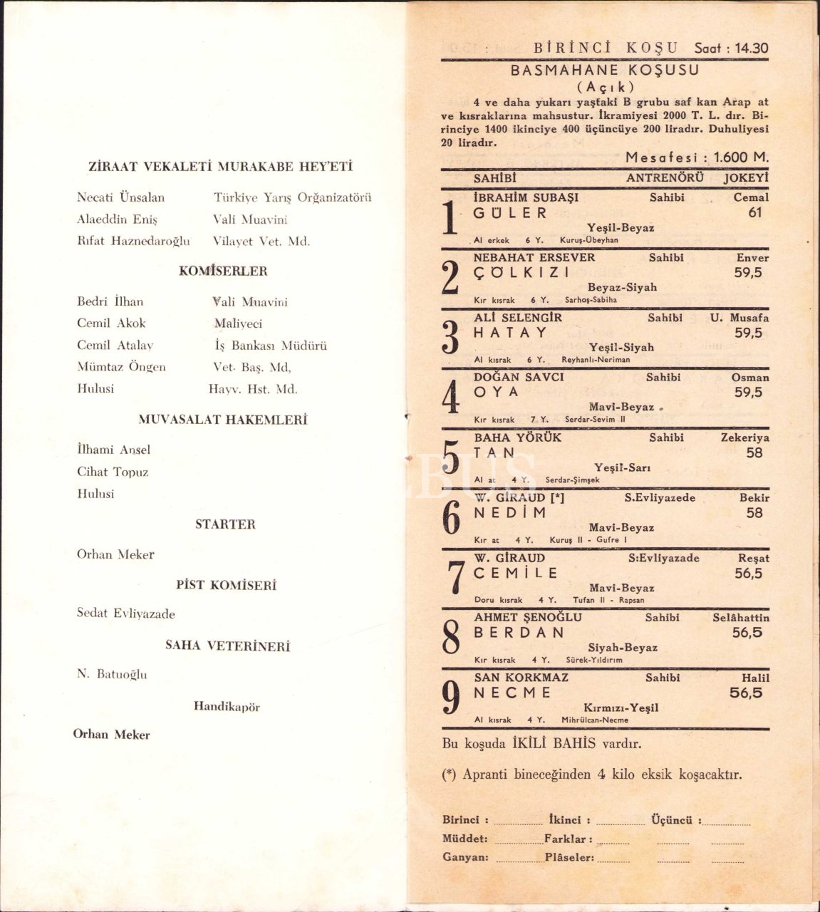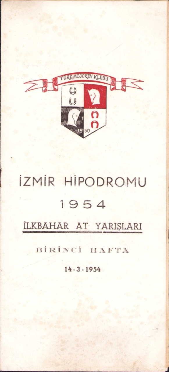 Türkiye Jokey Klübü - İzmir Hipodromu 1954 İlkbahar At Yarışları Birinci Hafta: 14-3-1954, 6 sayfa, 12x25 cm