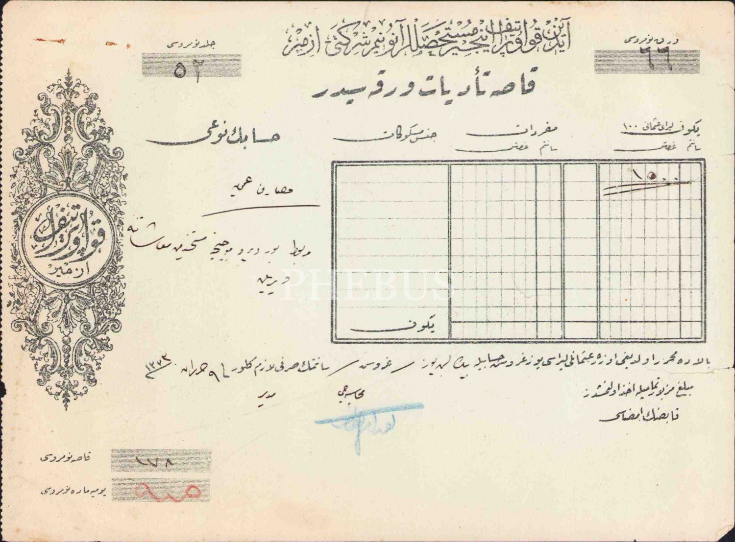 Osmanlıca Aydın Kooperatif İncir Müstahsıllar Anonim Şirketi - İzmir antetli fiş, 1333, 15x20 cm